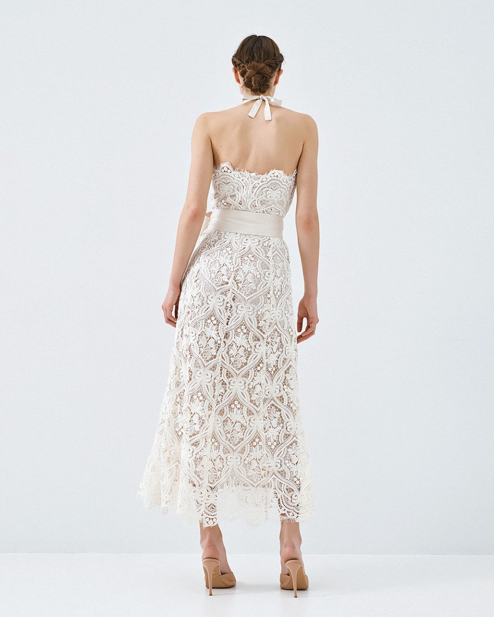 Abito con volant e rosa in tessuto - CIPRIA nero