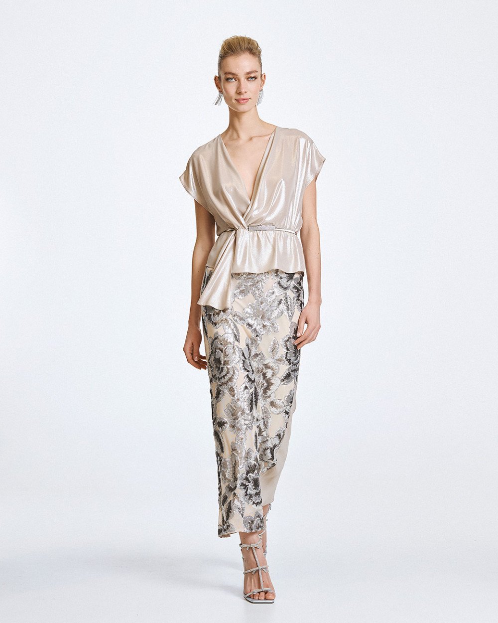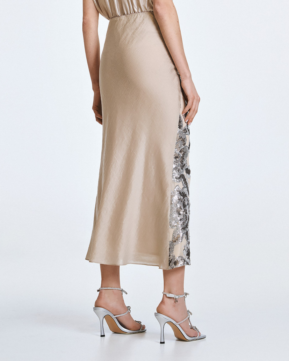 Gonna Midi con ricamo floreale di paillettes