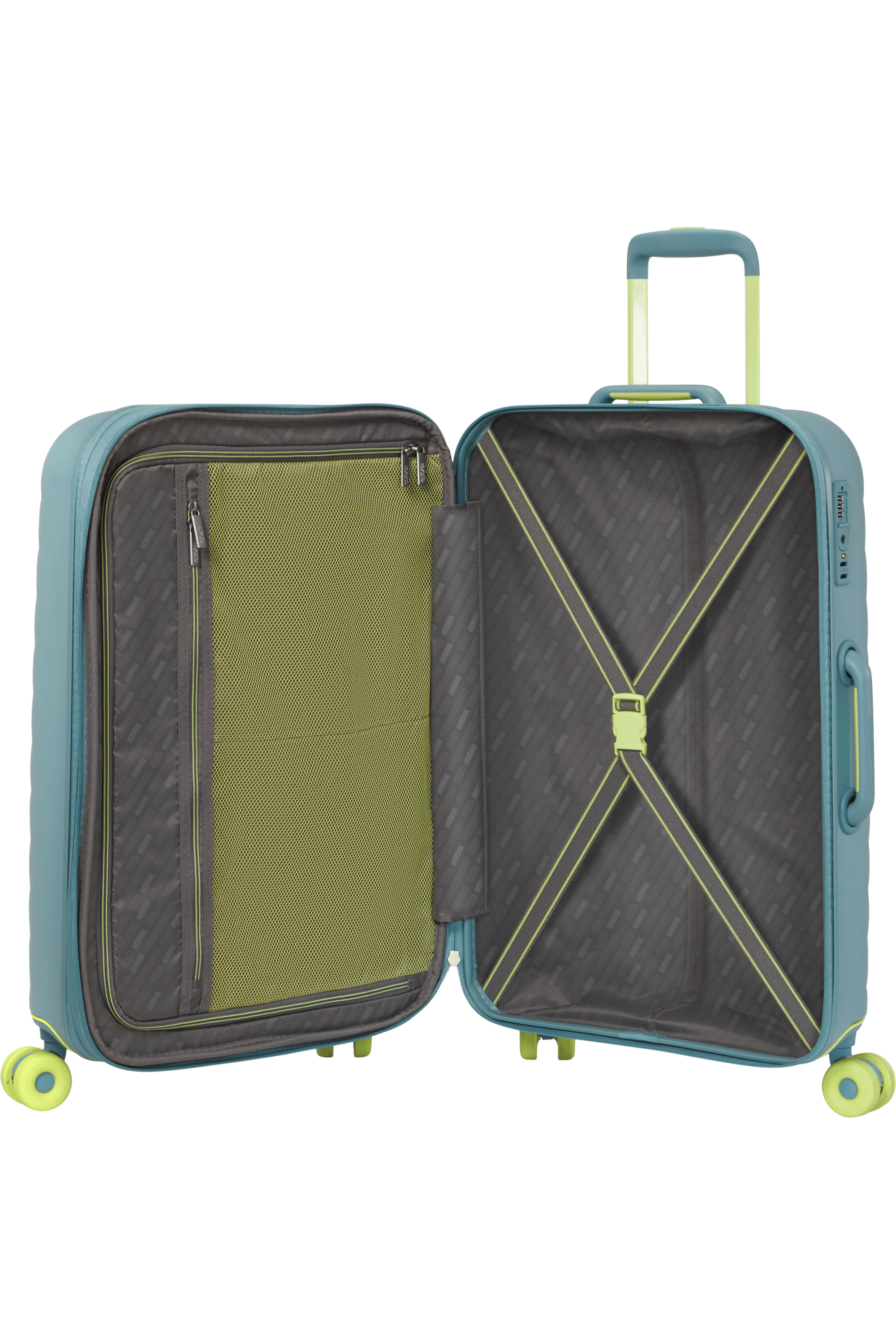 - Il 100% in peso della fodera interna, dell'espandibilità e delle cerniere è realizzato con plastica PET riciclata post-consumo utilizzando 7 bottiglie riciclate da 500 ml