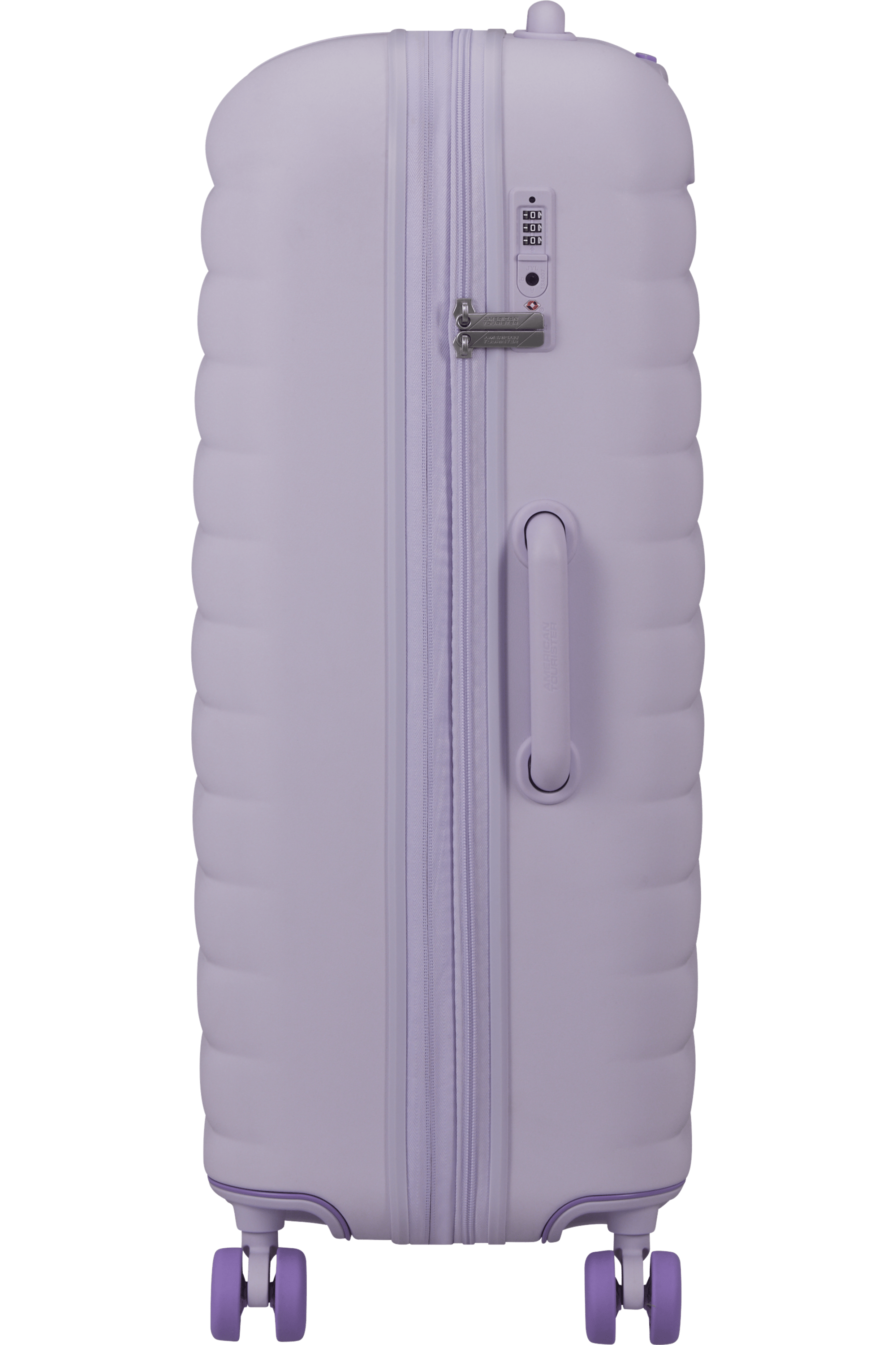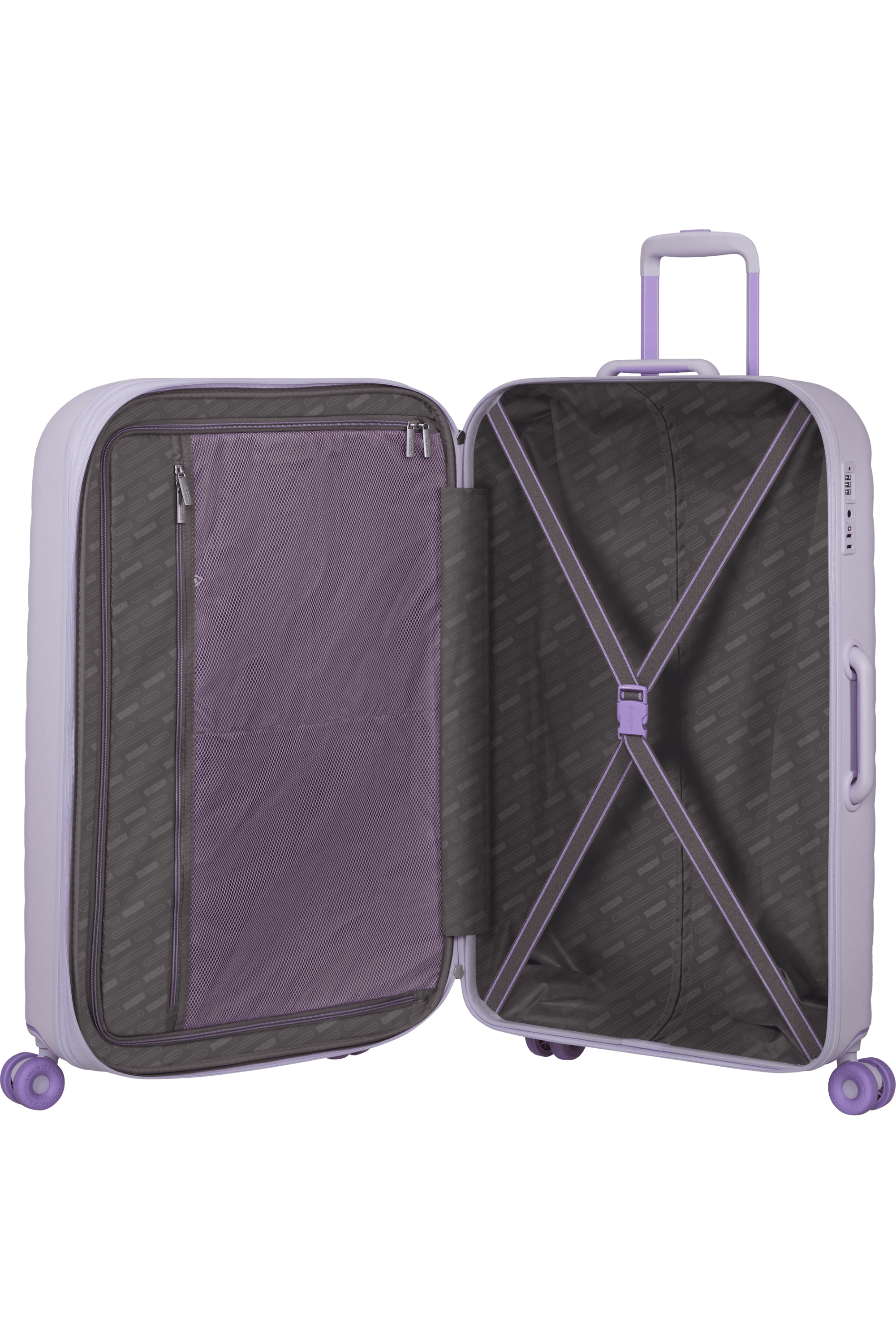 - Il 100% in peso della fodera interna, dell'espandibilità e delle cerniere è realizzato con plastica PET riciclata post-consumo utilizzando 9 bottiglie riciclate da 500 ml