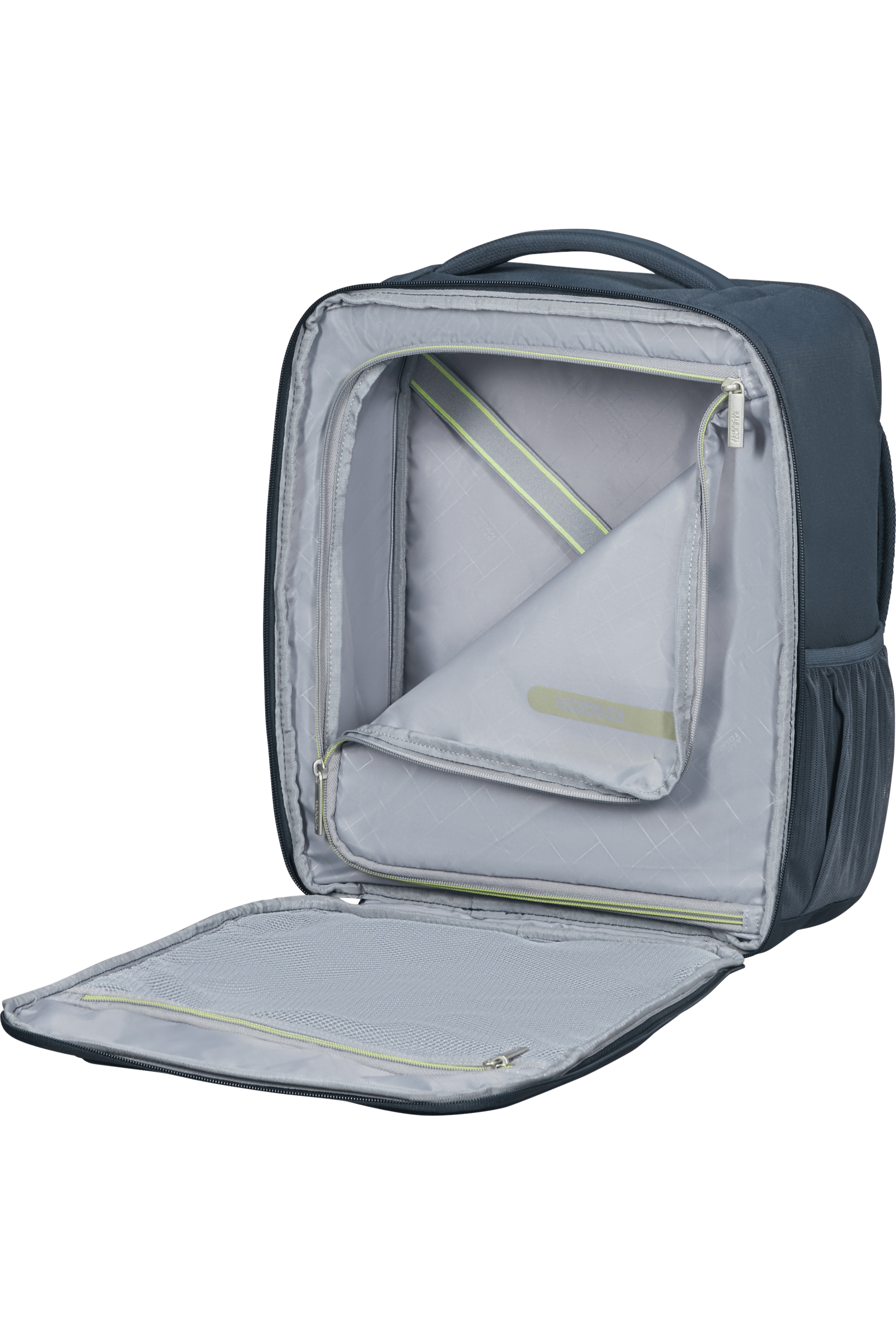 - Il 100% in peso della fodera interna, dell'espandibilità e delle cerniere è realizzato con plastica PET riciclata post-consumo utilizzando 16 bottiglie riciclate da 500 ml