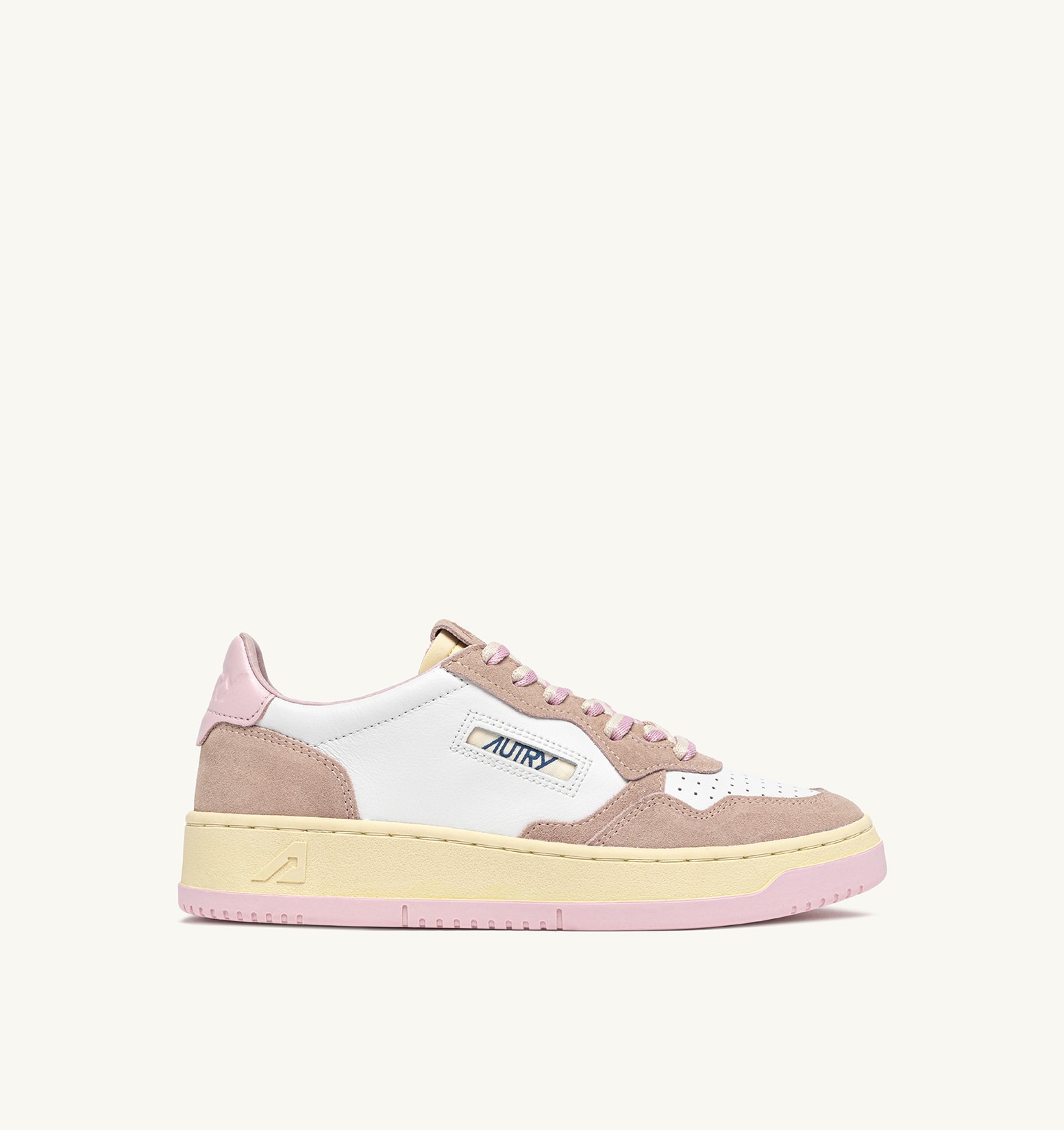 Il dettaglio in pelle che decora il tallone, la linguetta e il dettaglio laterale jacquard sono personalizzati con il logo Autry per un ulteriore tocco di autenticità.