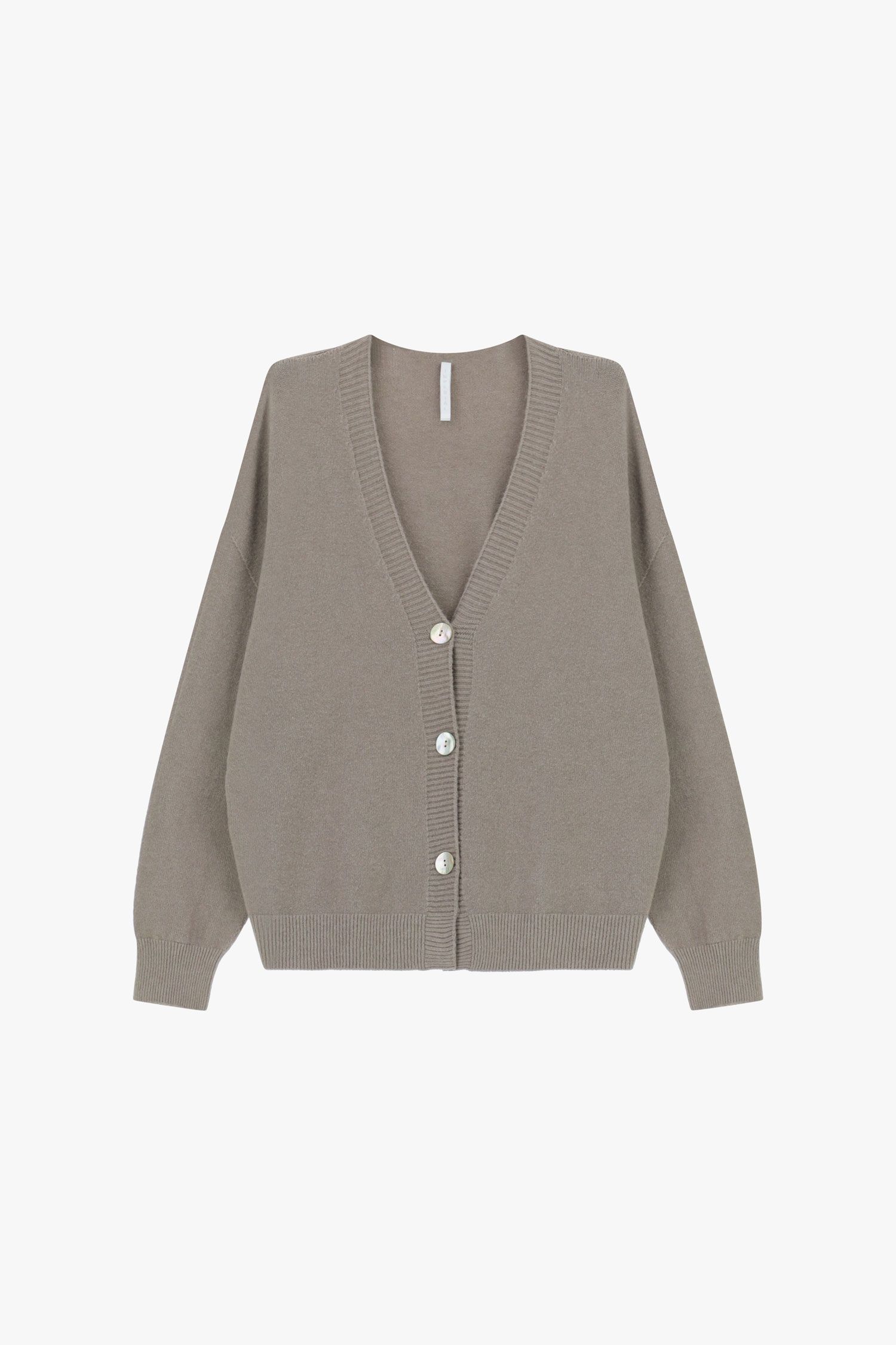 Cardigan caratterizzato da una linea rilassata e dettagli a coste su polsini, fondo e scollo. Chiusura frontale con grandi bottoni, perfetta per sovrapposizioni metropolitane e uno stile sofisticato. Ideale per chi desidera esprimere individualità attraverso silhouette essenziali e versatili, con opzioni cromatiche ricercate.