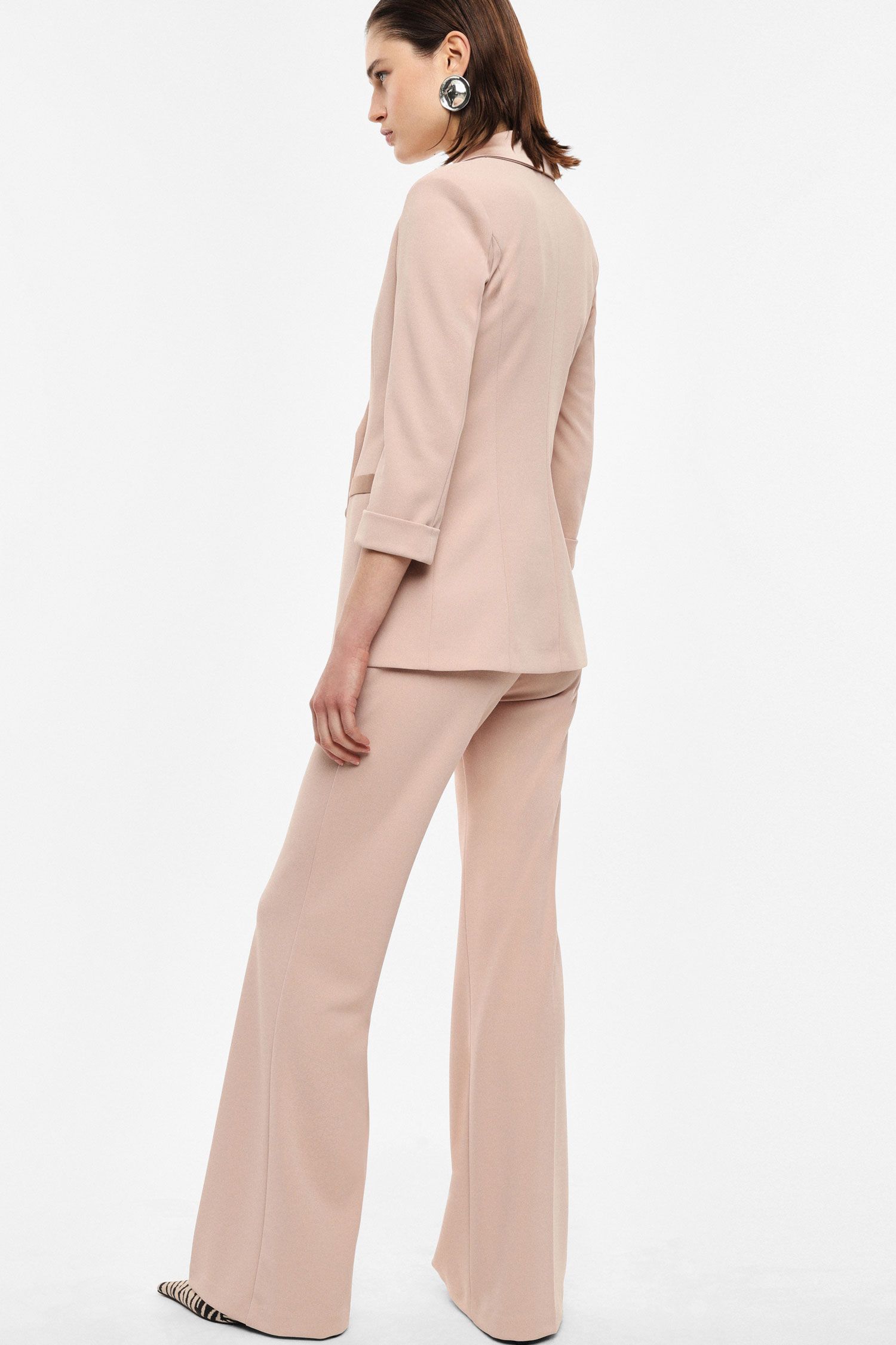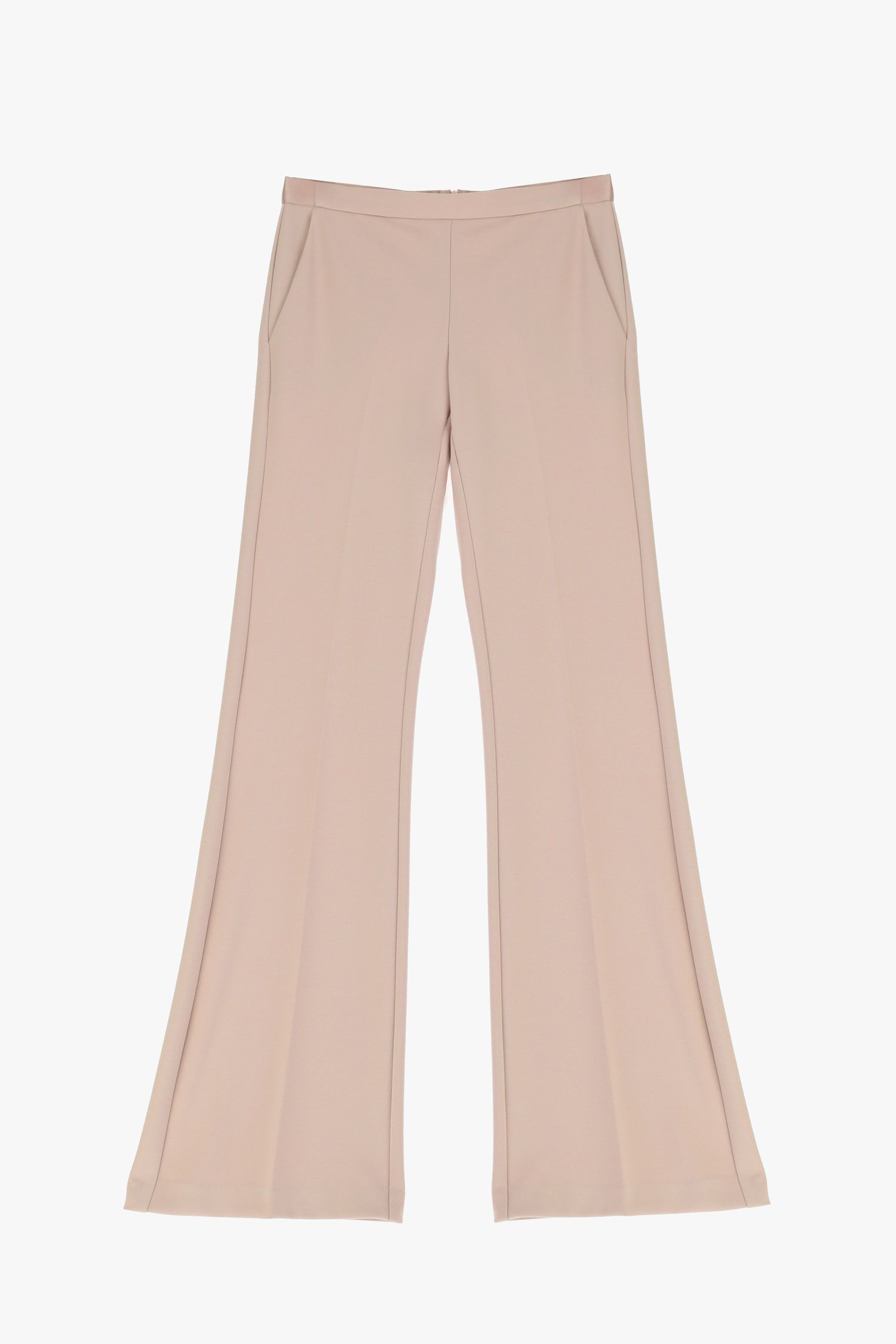 Linee allungate e struttura sartoriale per questi pantaloni flare a vita alta, arricchiti da pinces frontali e vestibilità scivolata. Il taglio valorizza la figura e offre versatilità, ideali per chi ricerca uno stile contemporaneo e sofisticato. Completa la proposta una silhouette impeccabile, perfetta per ogni occasione formale.
