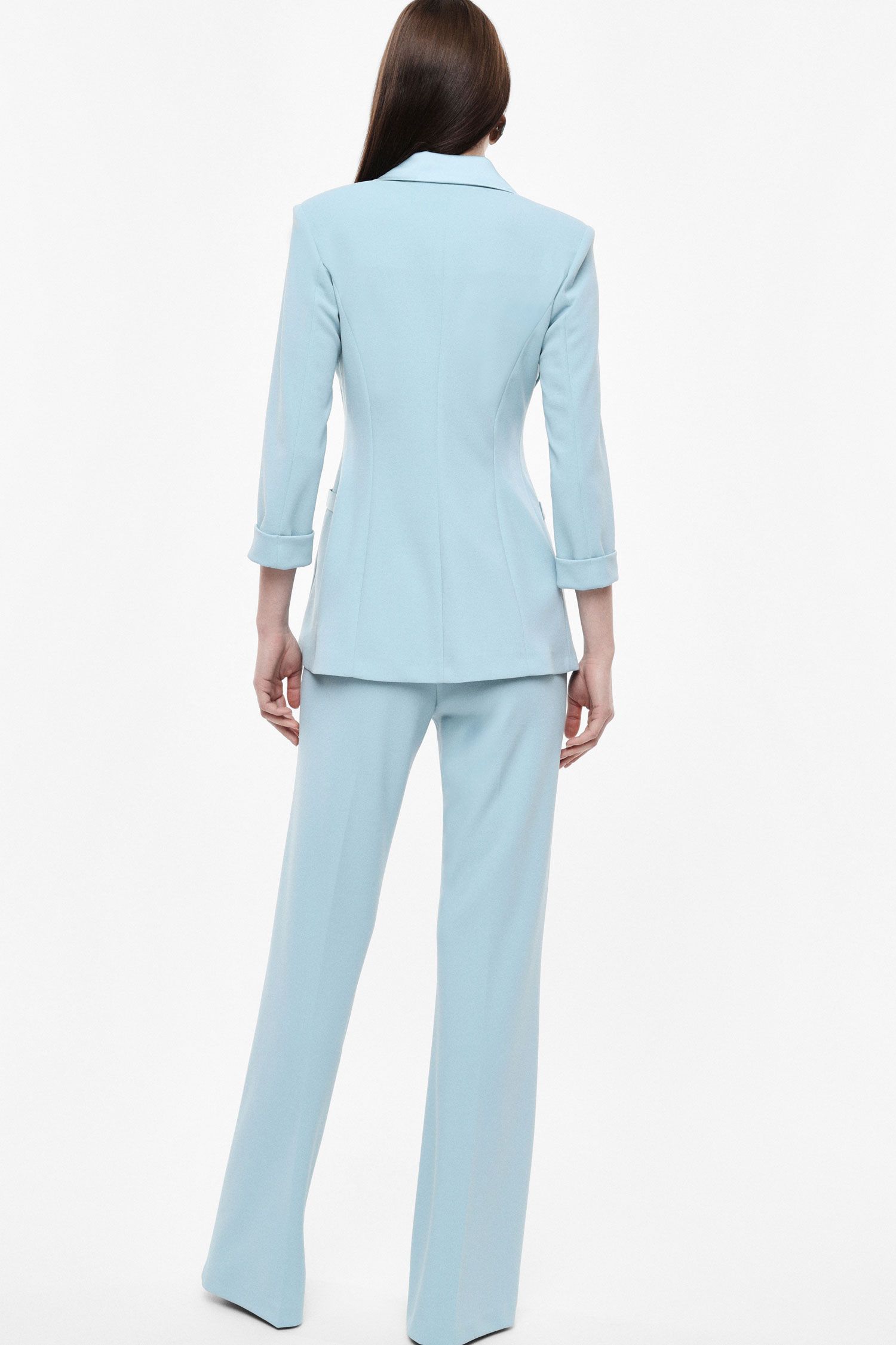 Linee allungate e struttura sartoriale per questi pantaloni flare a vita alta, arricchiti da pinces frontali e vestibilità scivolata. Il taglio valorizza la figura e offre versatilità, ideali per chi ricerca uno stile contemporaneo e sofisticato. Completa la proposta una silhouette impeccabile, perfetta per ogni occasione formale.