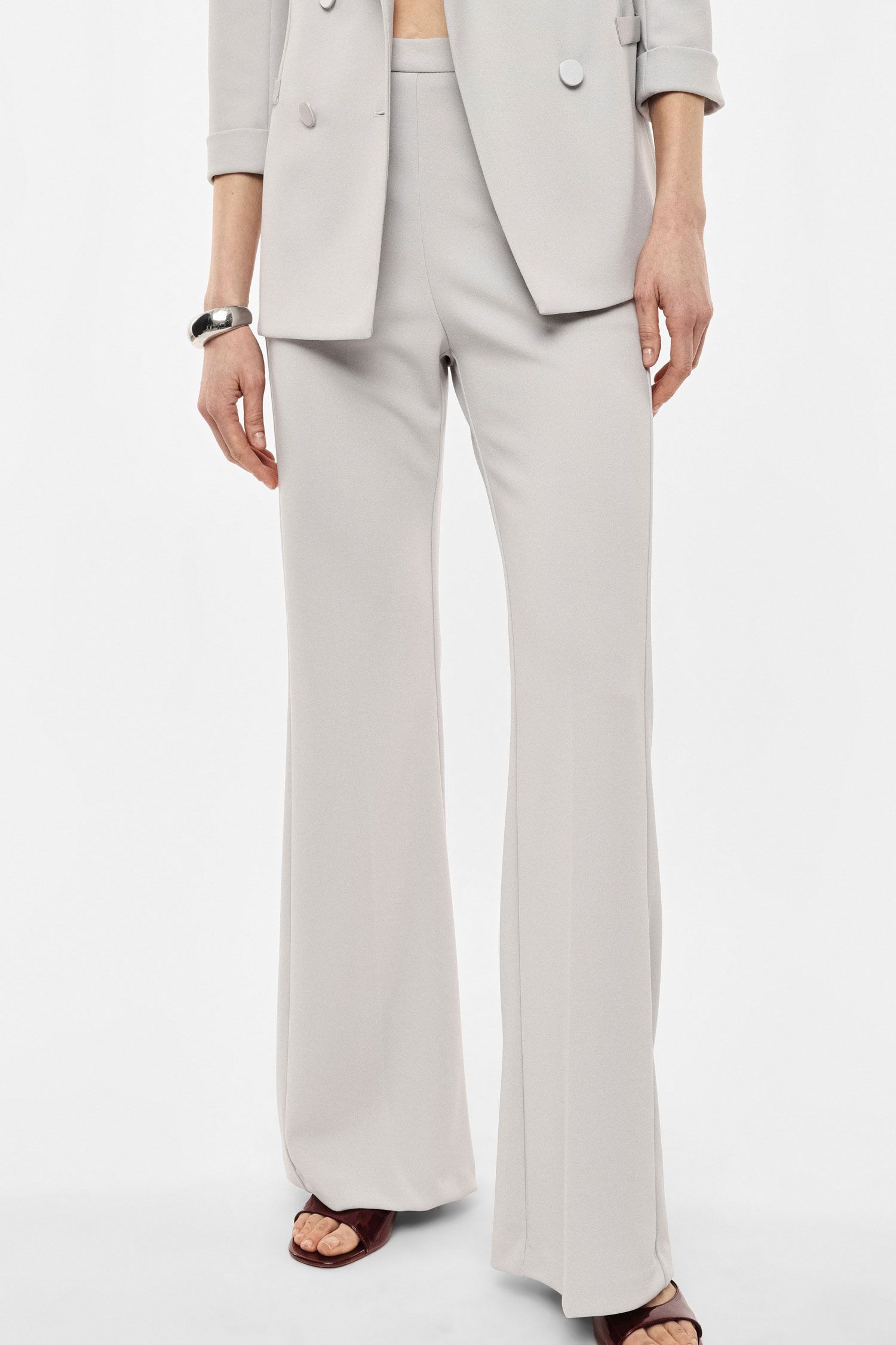 pantaloni flare sartoriali vita alta pinces