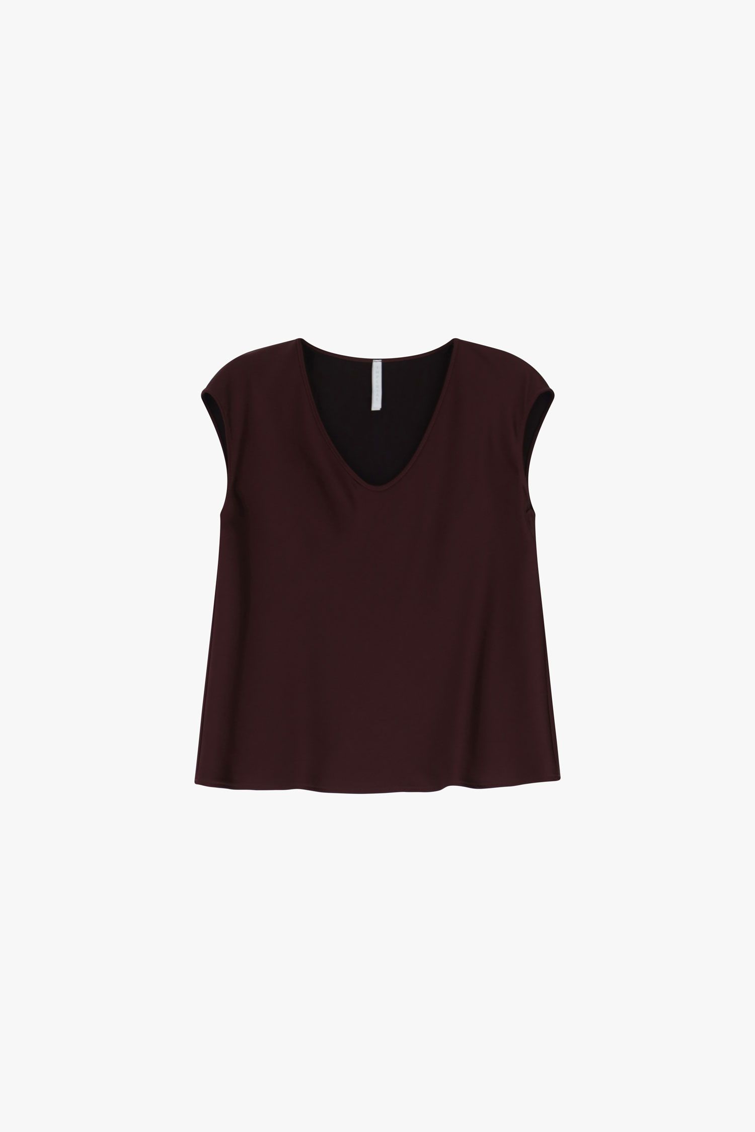 Profilo sofisticato per il top dalla linea ampia con scollo a v e taglio senza maniche, ideale per comporre abbinamenti contemporanei e valorizzare lindividualità. La varietà cromatica esalta la possibilità di espressione personale in ogni contesto metropolitano. Un capo essenziale per sperimentare combinazioni stilistiche raffinate.