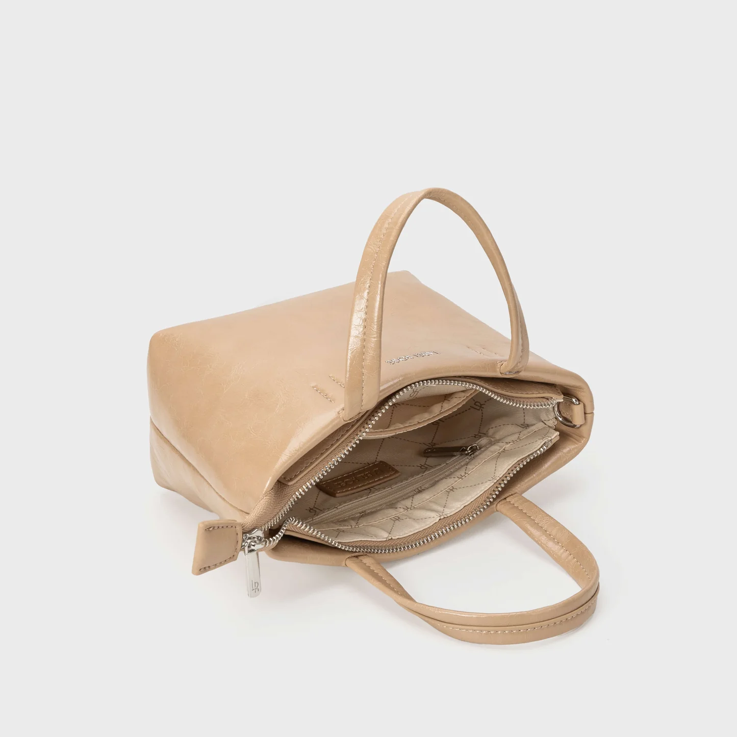 Dal fascino retrò e dalla praticità moderna, la borsa Nina è realizzata in PU con effetto vintage, perfetta per uno stile senza tempo. Dotata di manici e tracolla, può essere indossata a mano o crossbody, grazie ai moschettoni a scomparsa. Il logo in stampatello sulla parte frontale le dona un carattere deciso.