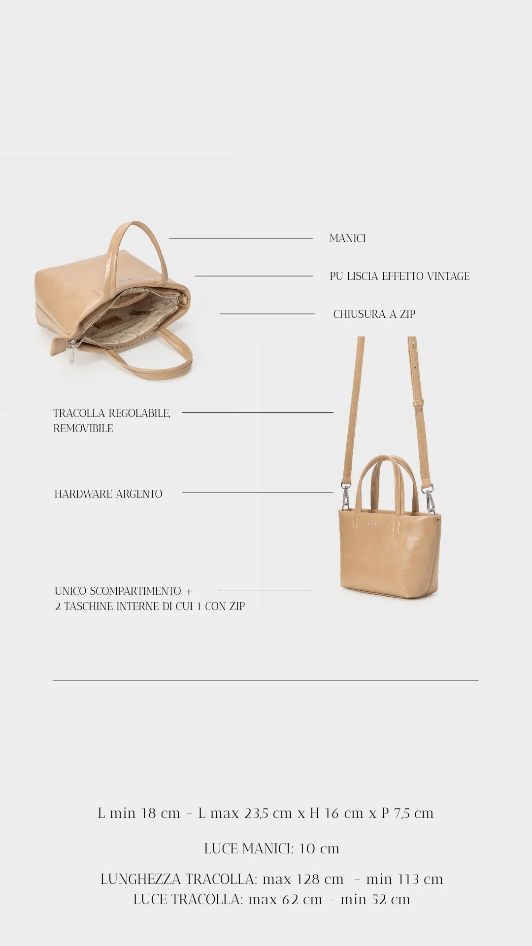 DIMENSIONI L x H x P min 18 - max 23,5 x 16 x 7,5 CM