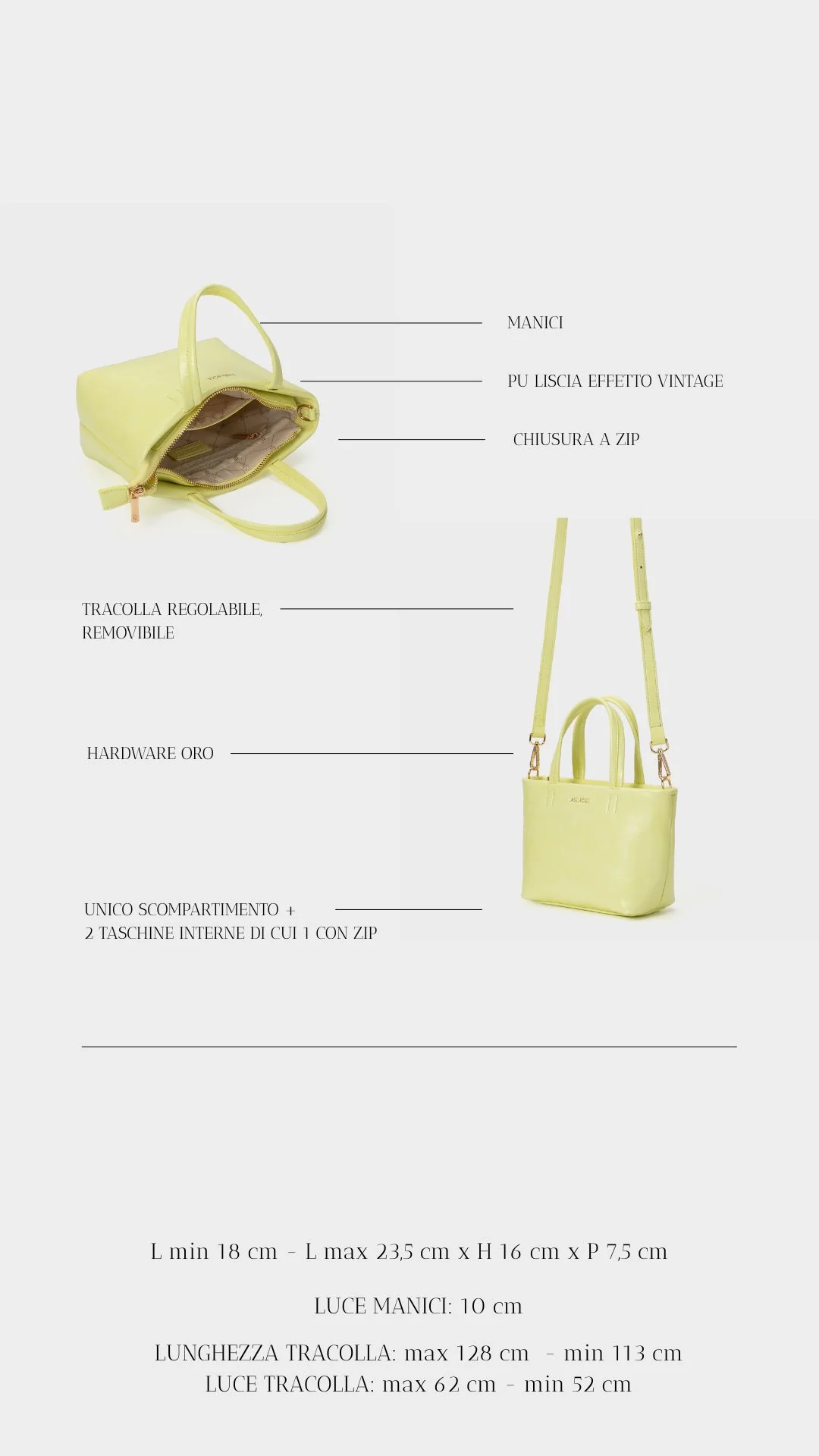 Lunghezza tracolla: max 128 - min 113 CM