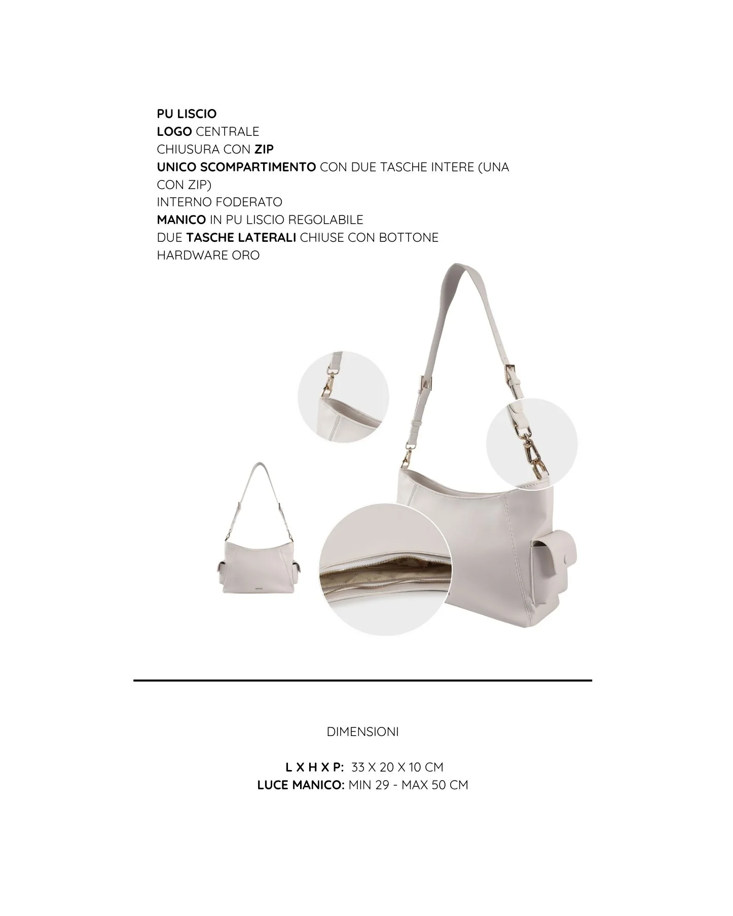 Luce manico a spalla che diventa tracolla: min 29 max 50 cm