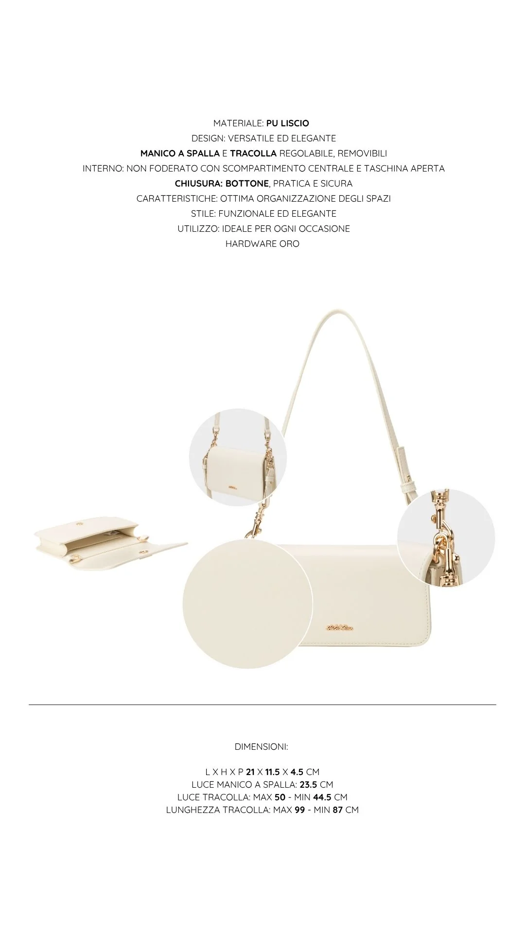 Lunghezza tracolla: max 99 - min 87 cm