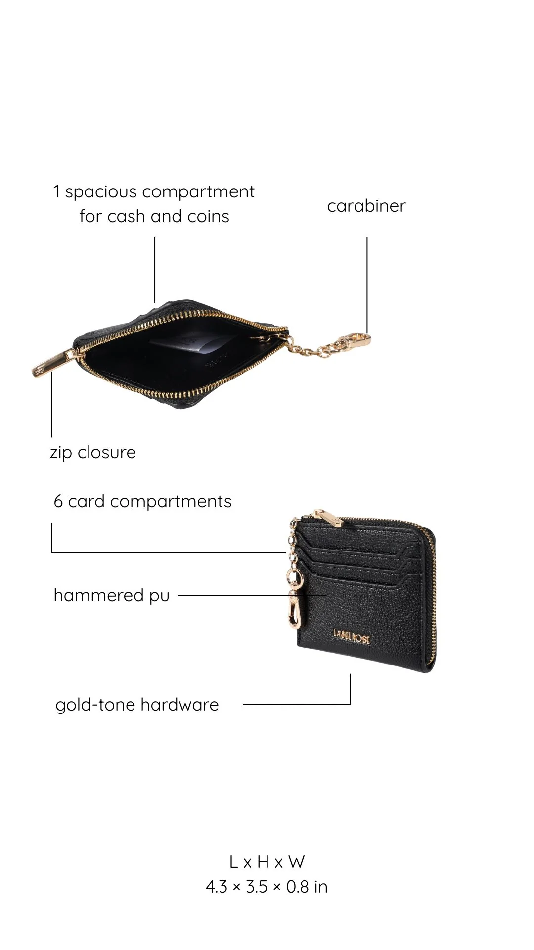 Il Paris Wallet unisce stile e praticità con un design elegante e compatto. Realizzato in pregiato PU martellato, offre 6 spazi portatessere per un'organizzazione ottimale. Dotato di uno scompartimento con chiusura a zip per maggiore sicurezza e un moschettone per una facile portabilità. Perfetto per chi cerca un accessorio funzionale e chic.