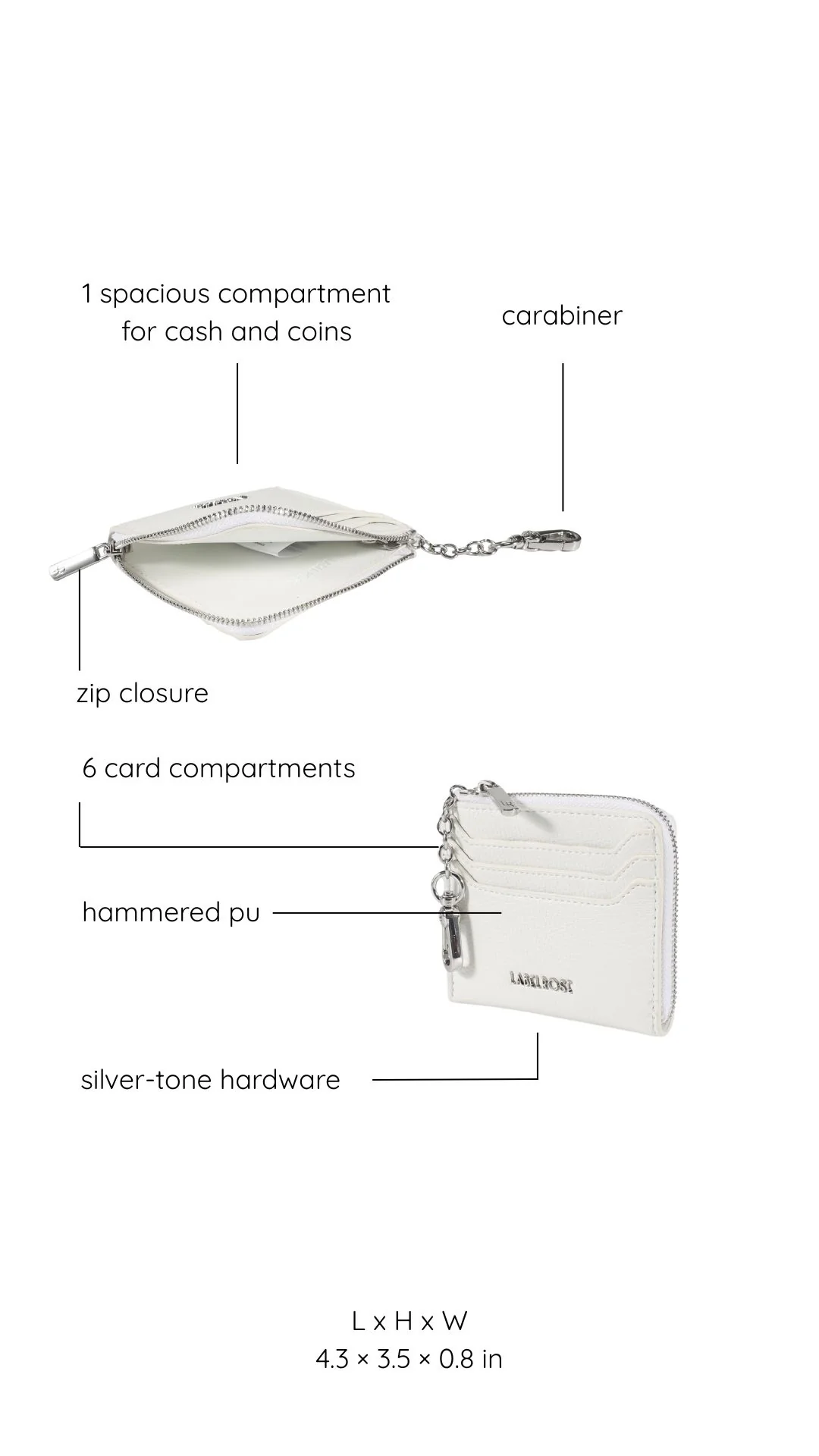 Il Paris Wallet unisce stile e praticità con un design elegante e compatto. Realizzato in pregiato PU martellato, offre 6 spazi portatessere per un'organizzazione ottimale. Dotato di uno scompartimento con chiusura a zip per maggiore sicurezza e un moschettone per una facile portabilità. Perfetto per chi cerca un accessorio funzionale e chic.