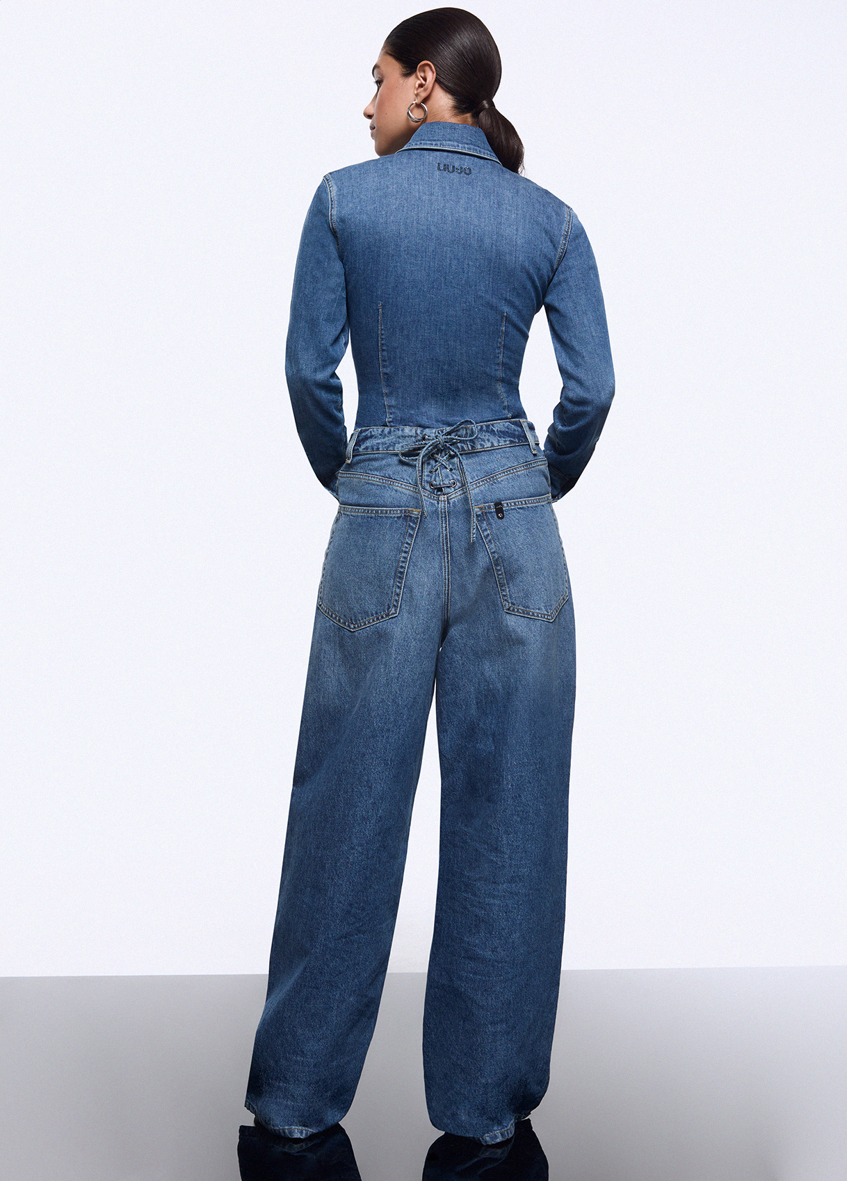 In questi jeans wide-leg della collezione Liu Jo feat. Elodie il denim disegna un silhouette magnetica, tra volumi ampi e dettagli lace-up che trasformano un classico everyday in un capo esclusivo.