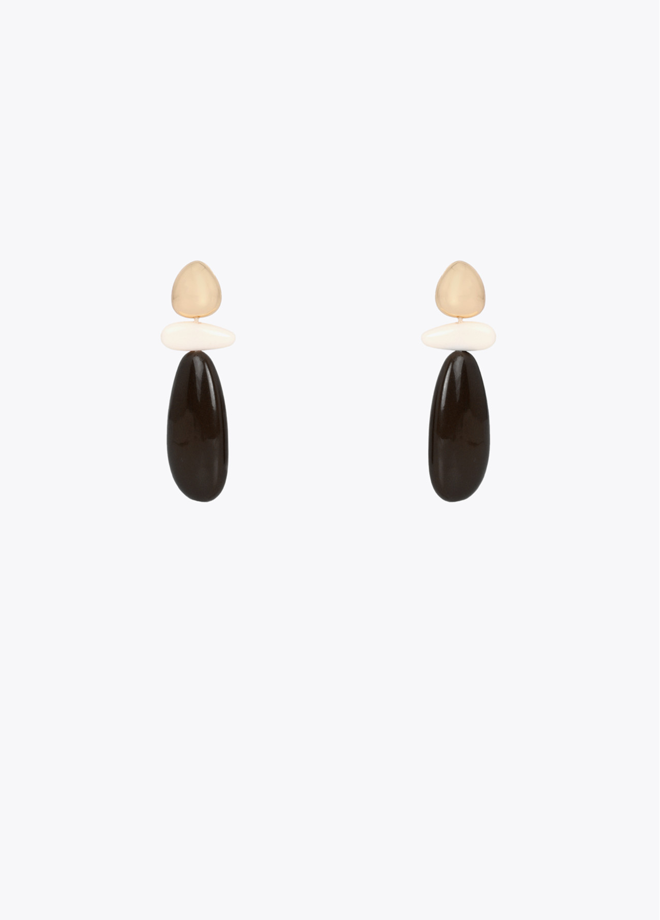 Eleganti orecchini in resina bicolore che combinano tonalità moderne con un design sofisticato. La loro forma organica e la chiusura sicura li rendono perfetti per ogni occasione. Dettaglio di finitura lucido che aggiunge un tocco di lusso discreto al tuo esti