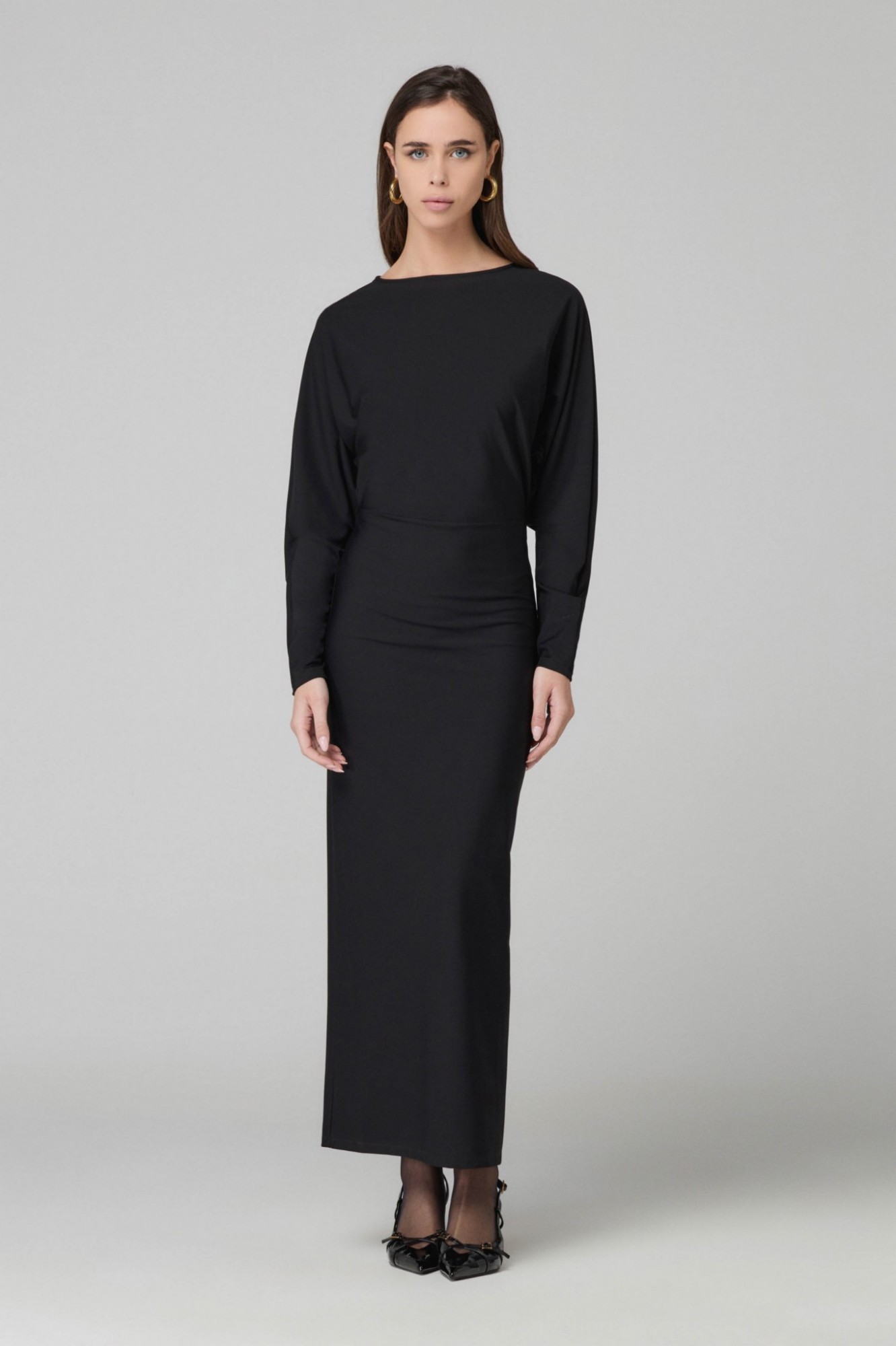 Meredith - Abito Con Laccietto Sul Fianco Asimmetrico In Viscosa Nero Mar de Margaritas