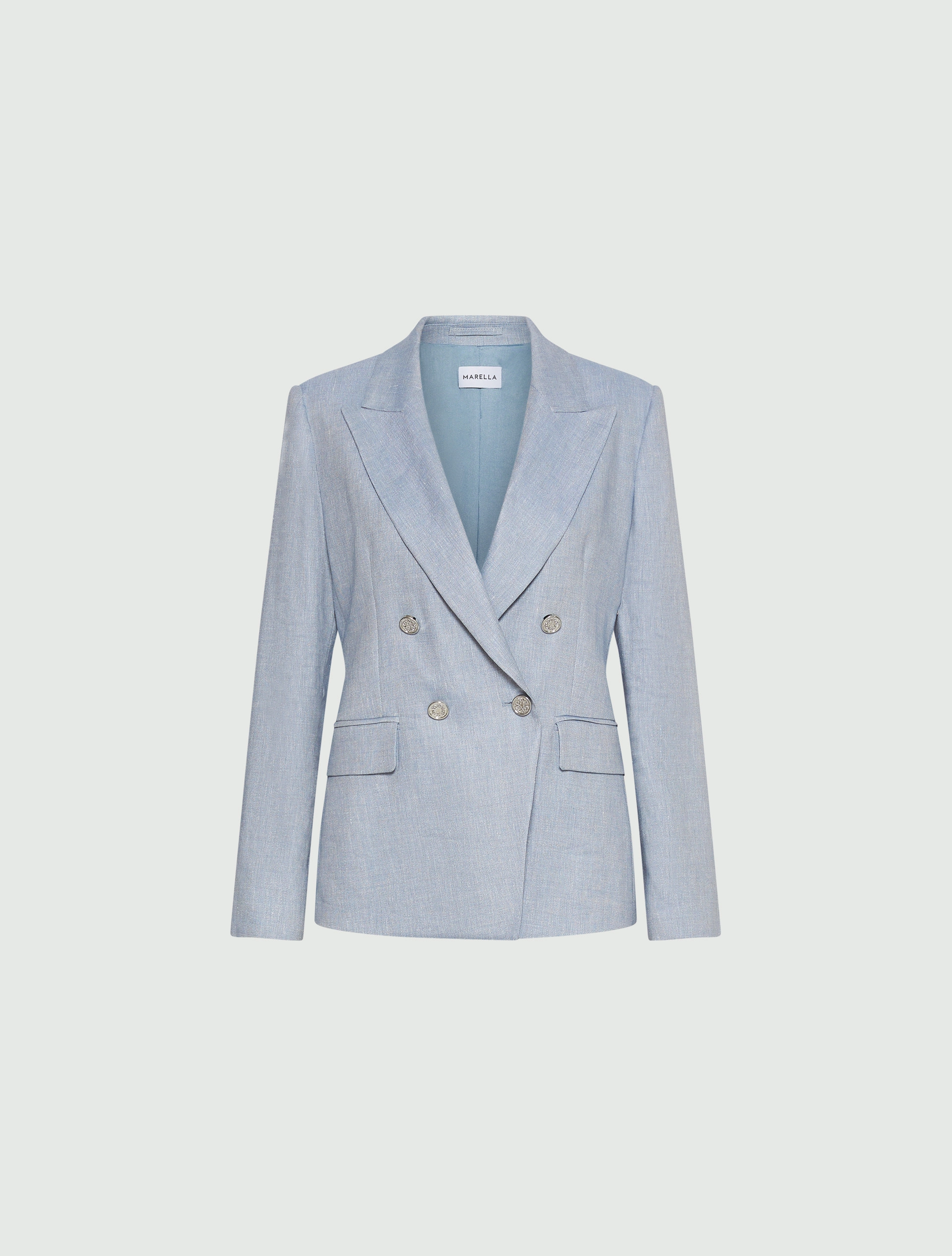 - Blazer in chevron di lino e viscosa mouliné stretch con fodera interna