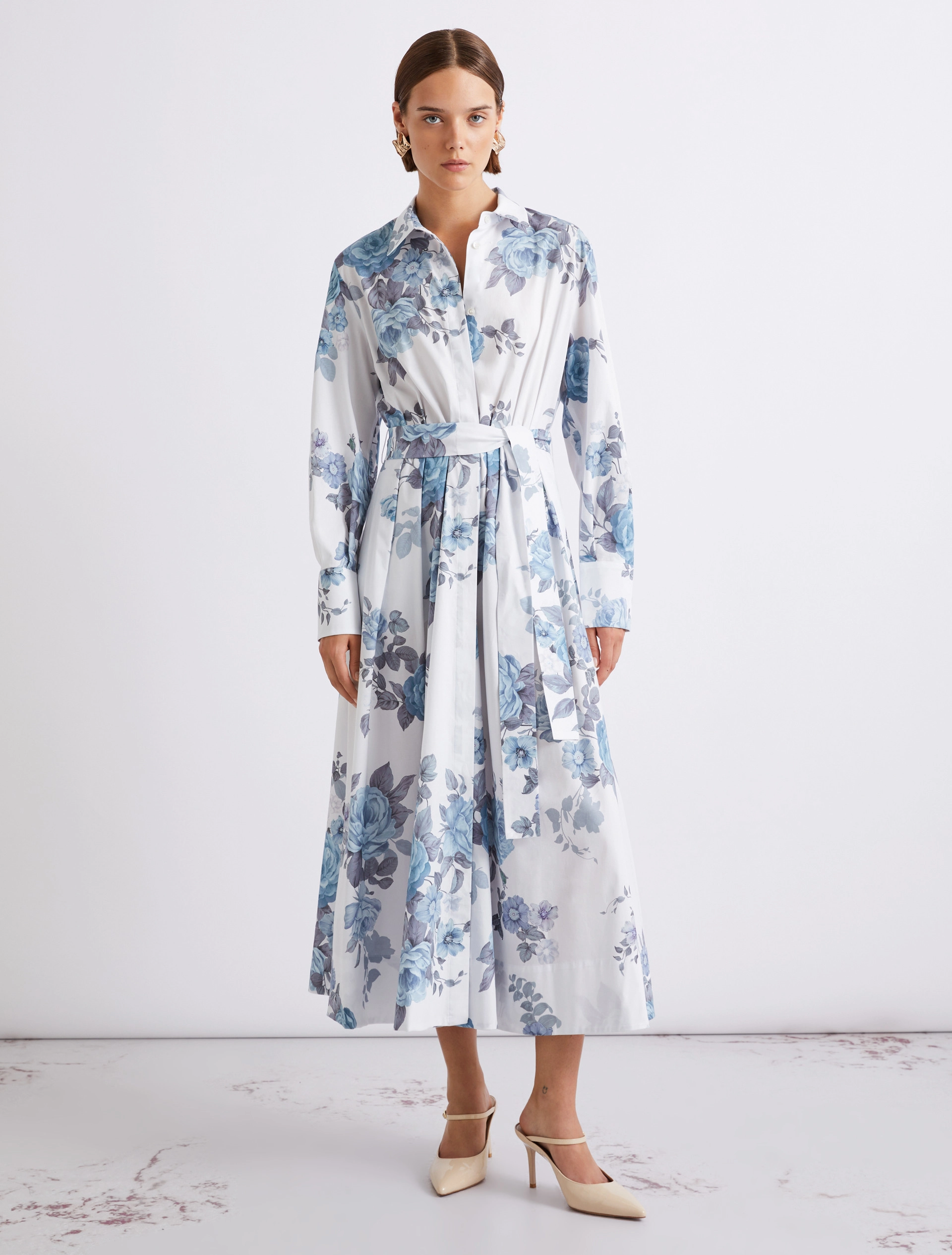 Fresco e leggero, lo chemisier in popeline è il capo passe partout della bella stagione. Con manica lunga e doppio bottone al polso, per una primavera all'insegna della versatilità.