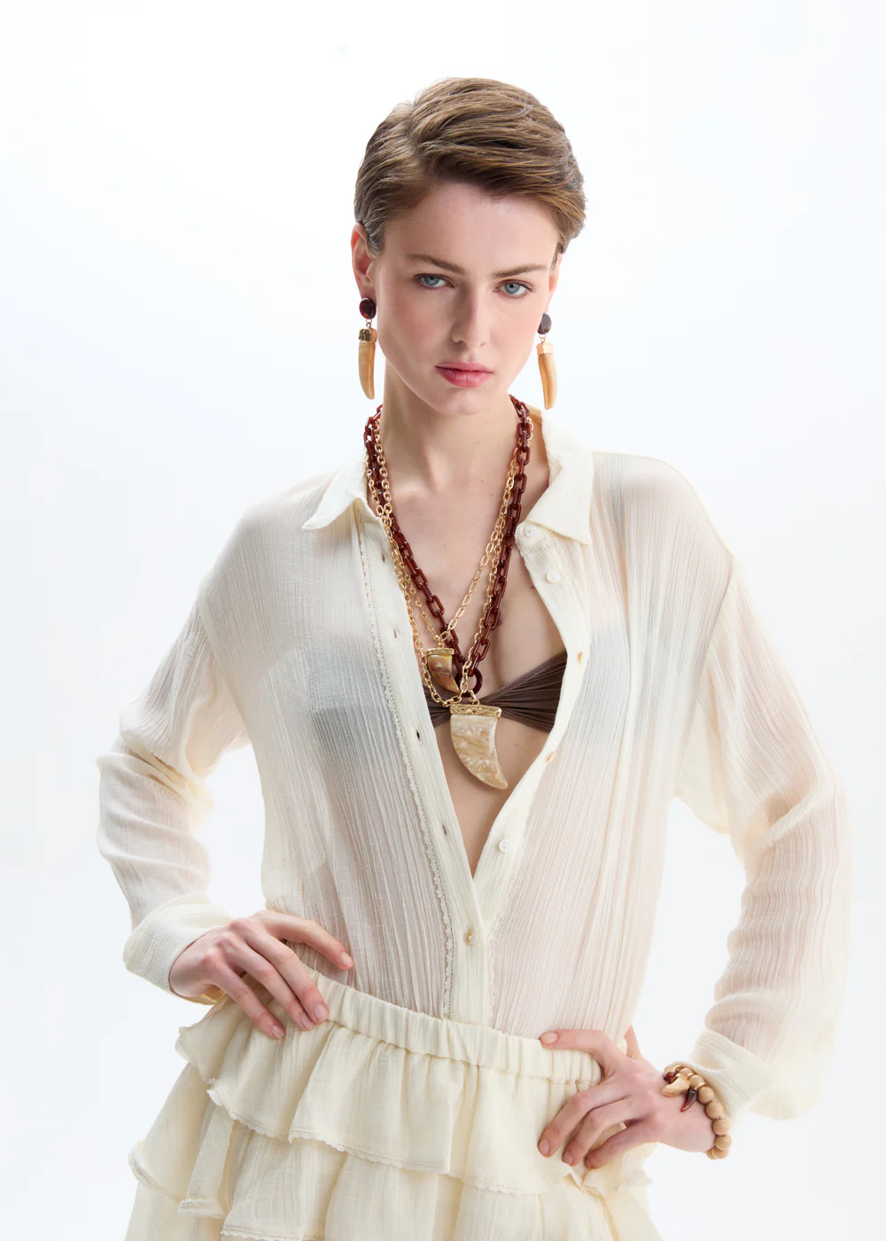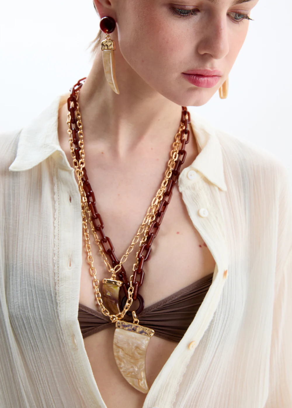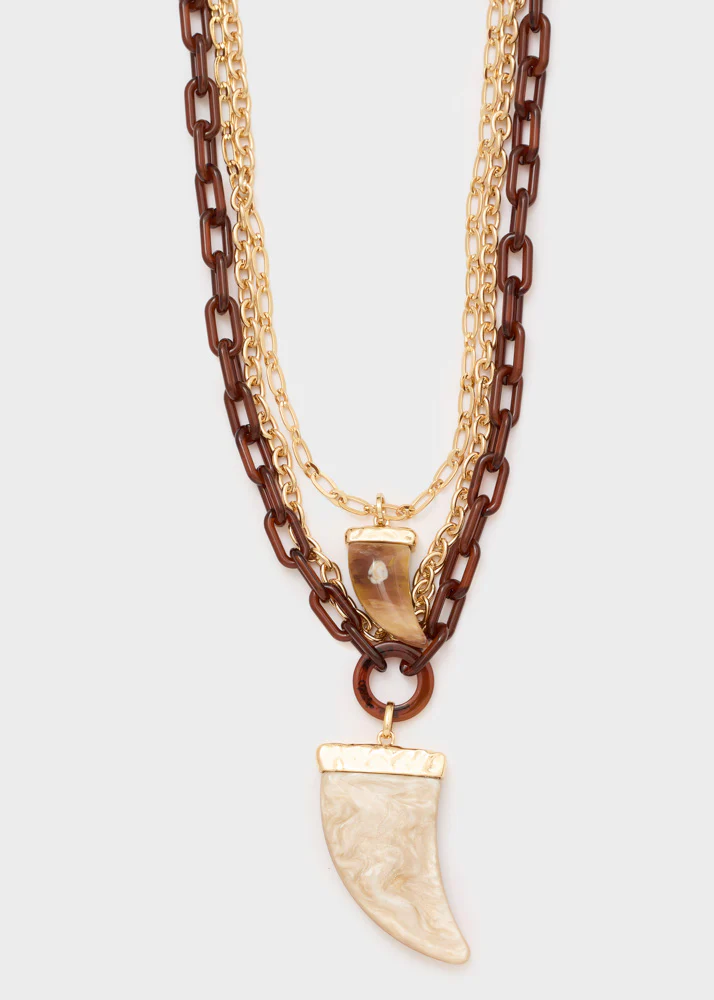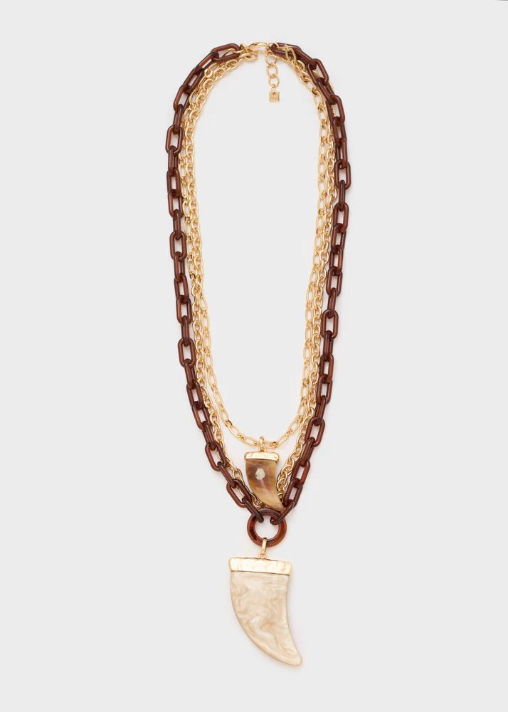 COLLANA MULTIFILO CON CORNO OVER MARRONE