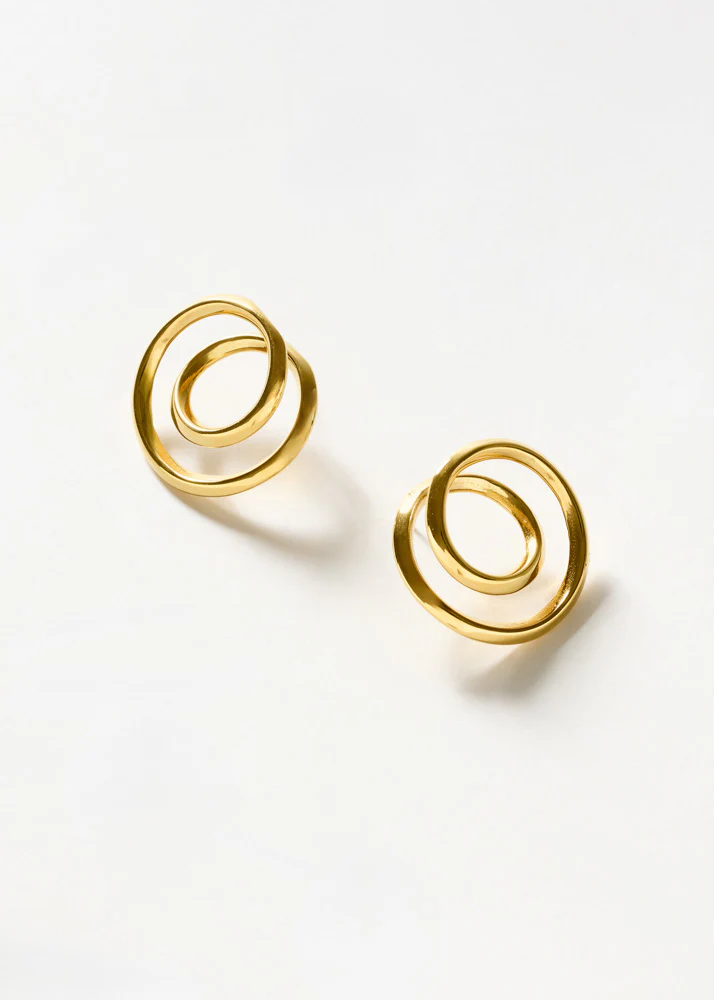 Orecchini dal design scultoreo che giocano con volumi morbidi e linee fluide. La loro forma organica li rende estremamente eleganti e contemporanei, capaci di valorizzare il viso con naturalezza. Un accessorio ideale per chi desidera un gioiello distintivo ma raffinato.