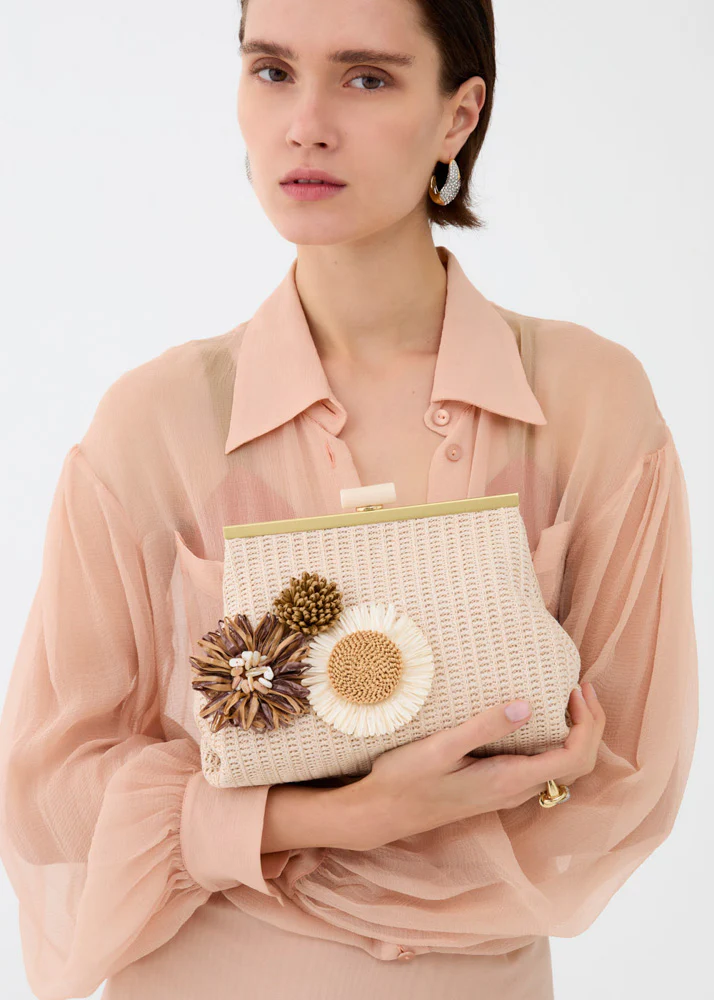 POCHETTE MARBELLA IN PAGLIA+FIORI