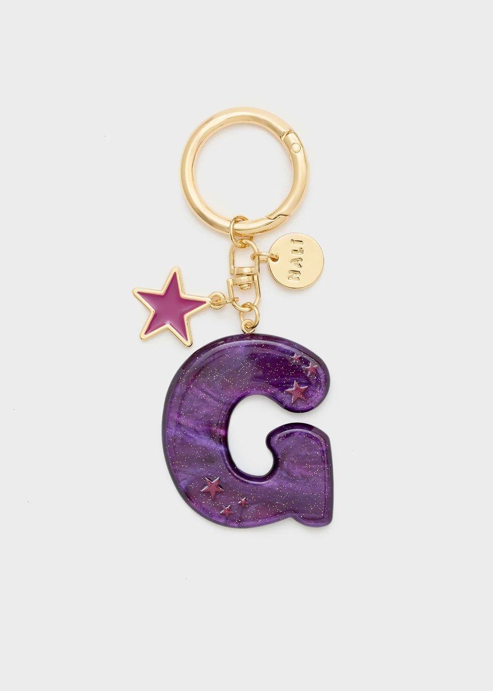 Portachiavi con lettera decorativa dal design moderno, arricchito da charm luminosi e dettagli che lo rendono un accessorio pratico e stiloso per personalizzare borse, zaini e mazzi di chiavi.