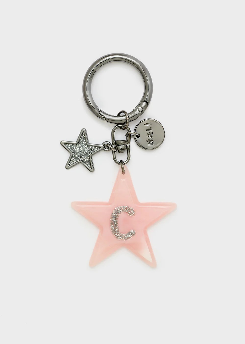 Portachiavi con stella e lettera, caratterizzato da un design elegante e contemporaneo, ideale per dare un tocco di originalità e raffinatezza ai tuoi accessori quotidiani.