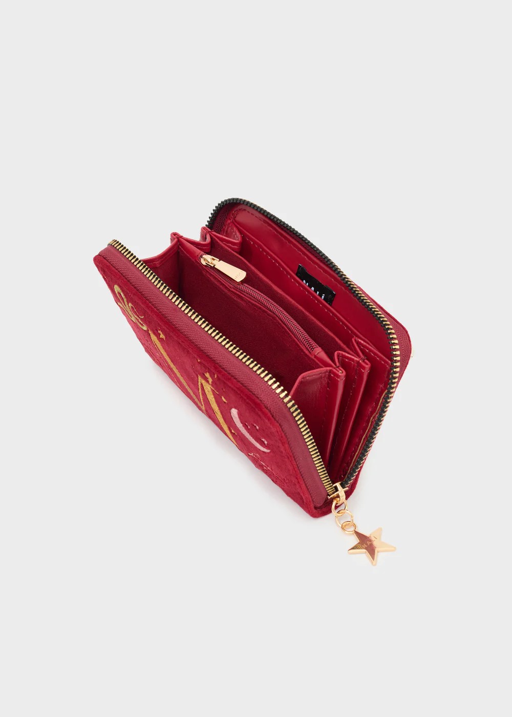 Portafoglio elegante con chiusura a zip, dotato di scomparti interni per carte e banconote. Un accessorio pratico e raffinato, pensato per unire funzionalità e stile in un unico oggetto indispensabile.