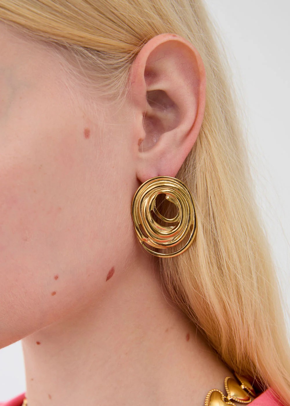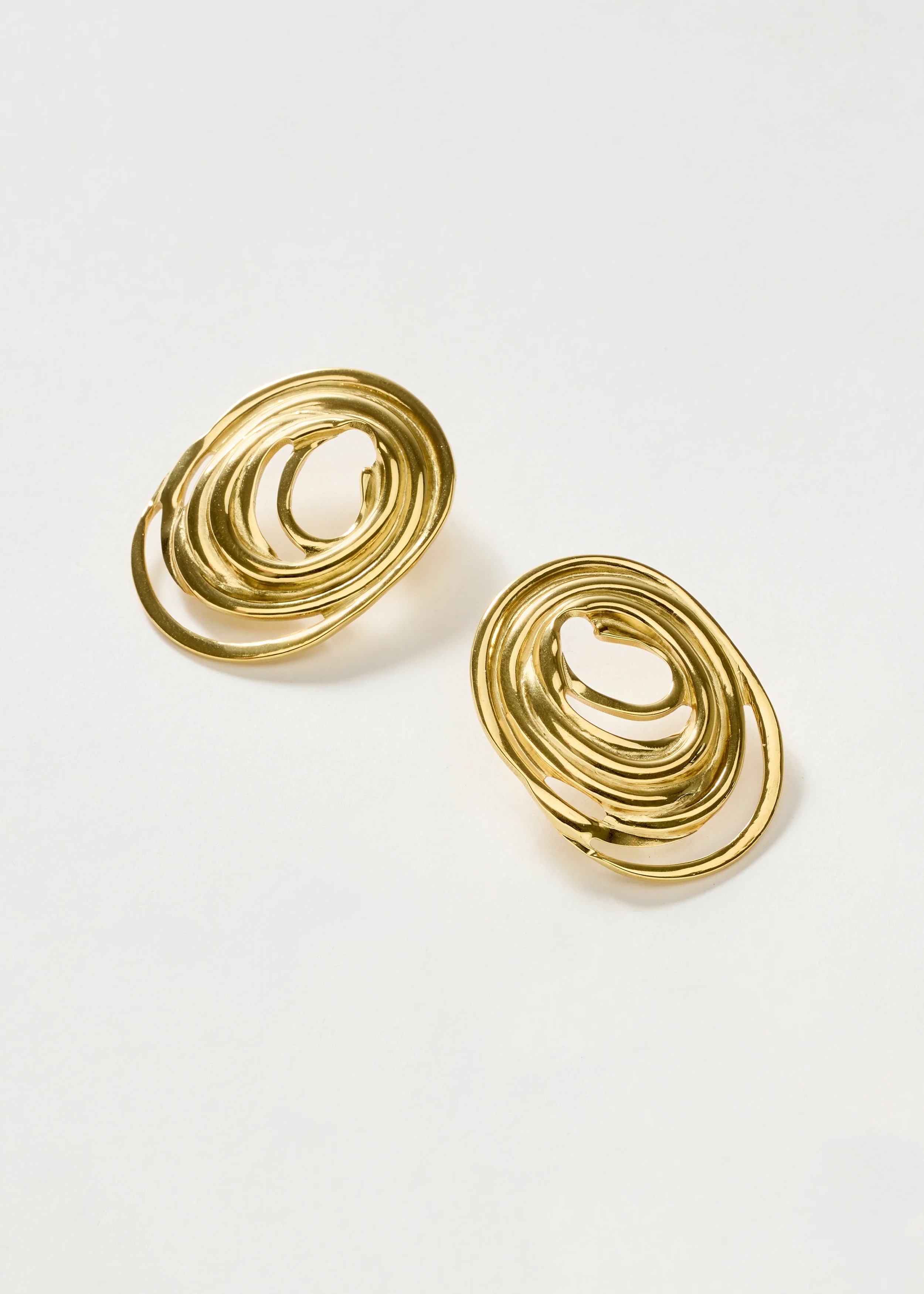 Orecchini dal design scultoreo e raffinato, caratterizzati da una forma armoniosa che valorizza il viso con eleganza. La lavorazione accurata e la struttura leggera garantiscono comfort e stile, rendendoli ideali sia per luso quotidiano che per occasioni speciali.
