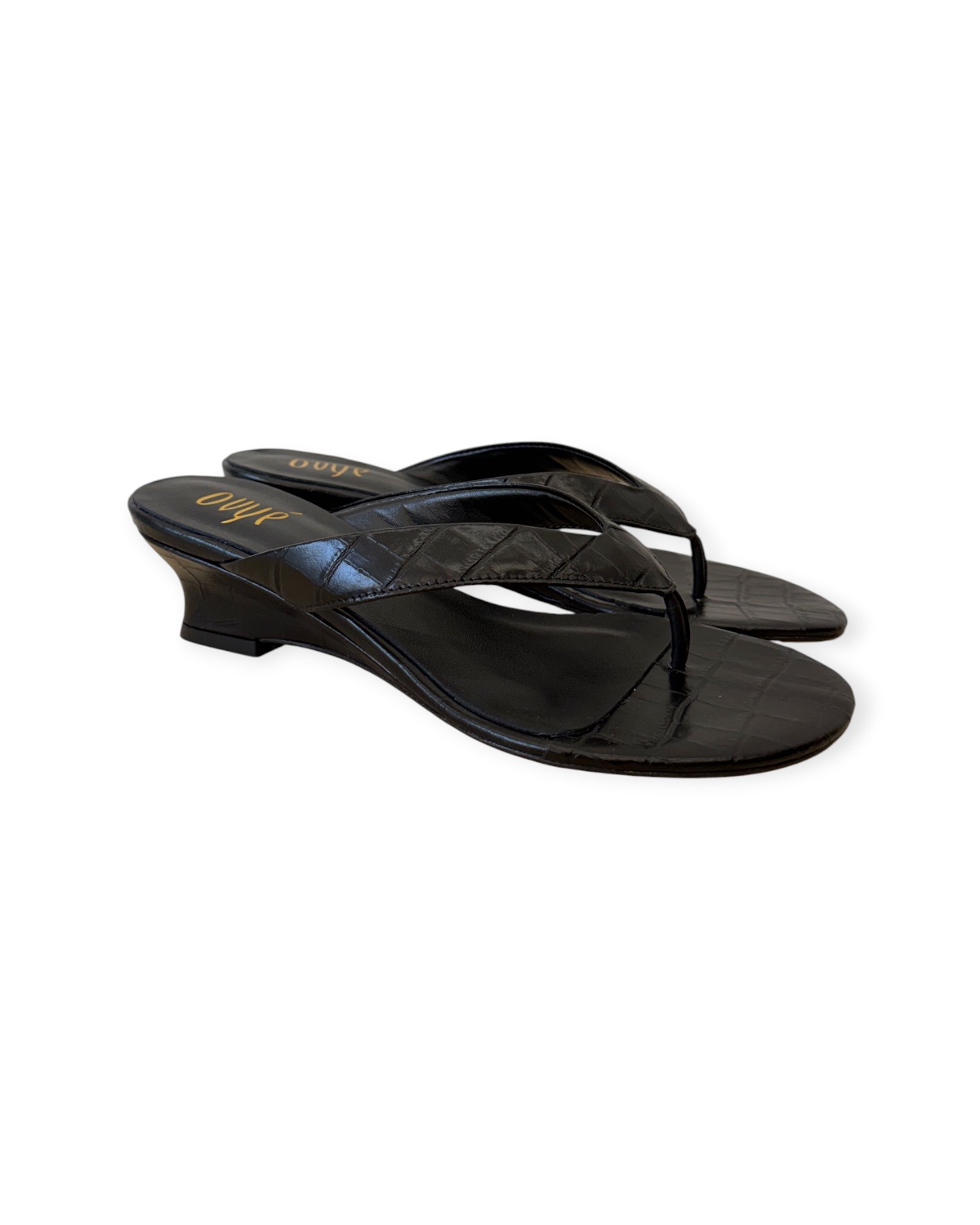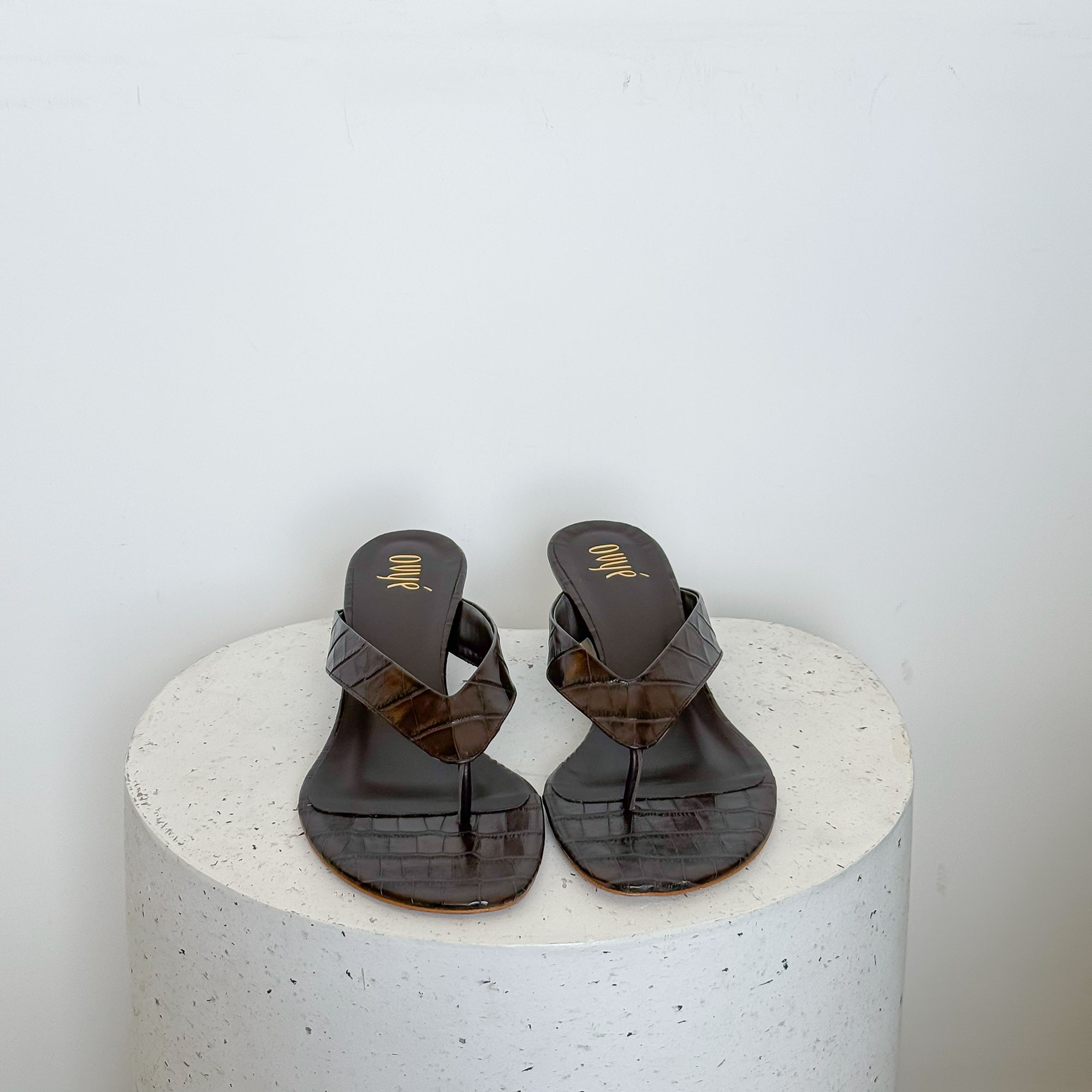 Infradito con fascia centrale sagomata, struttura slip-on e tacco basso leggermente rialzato circa 7 cm