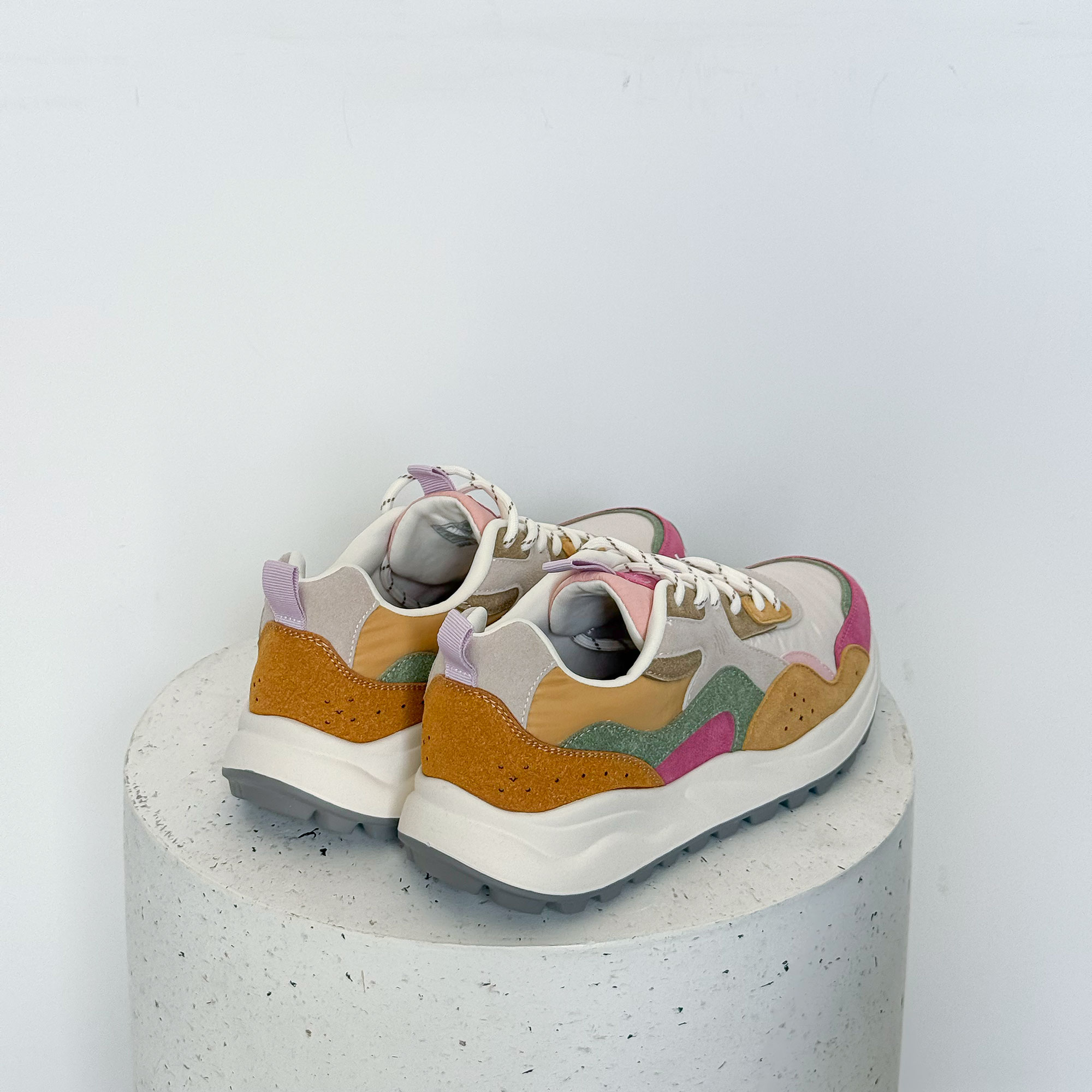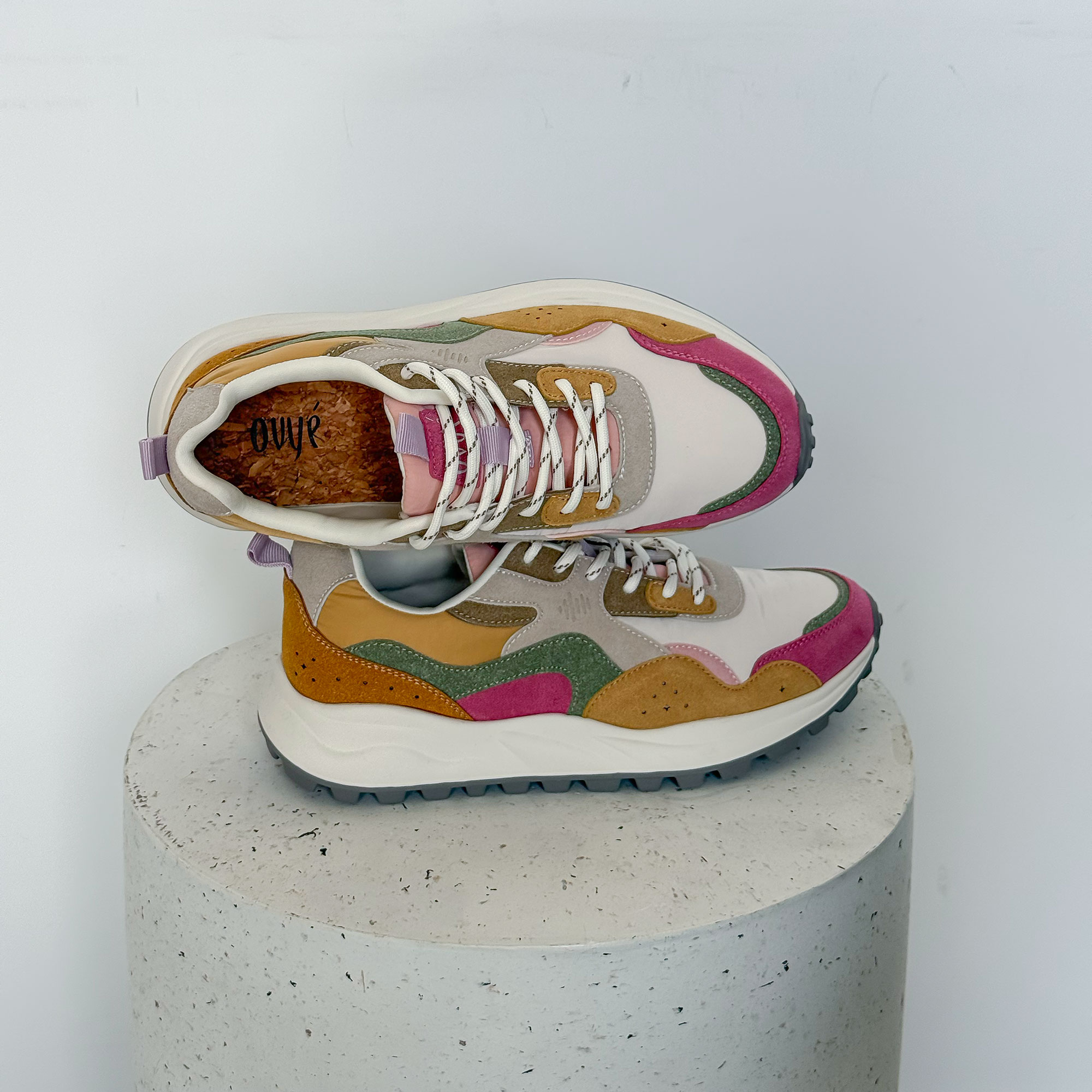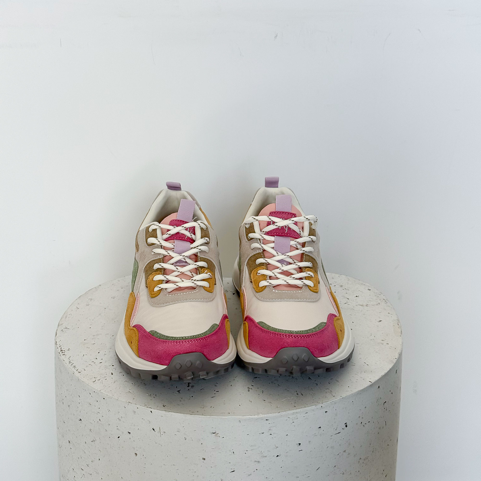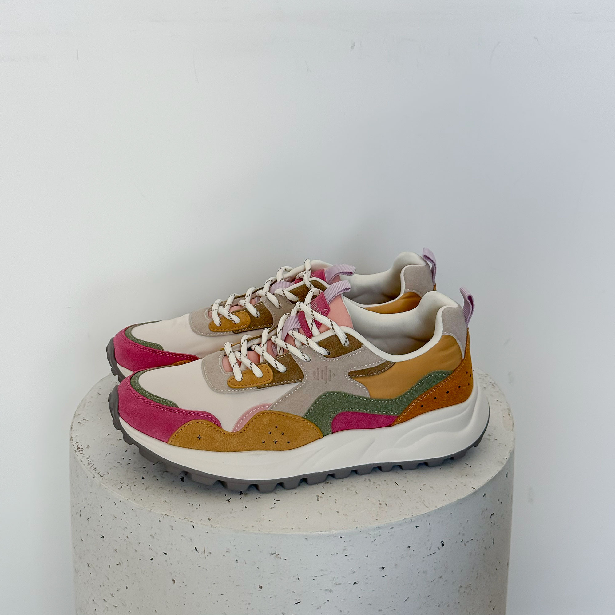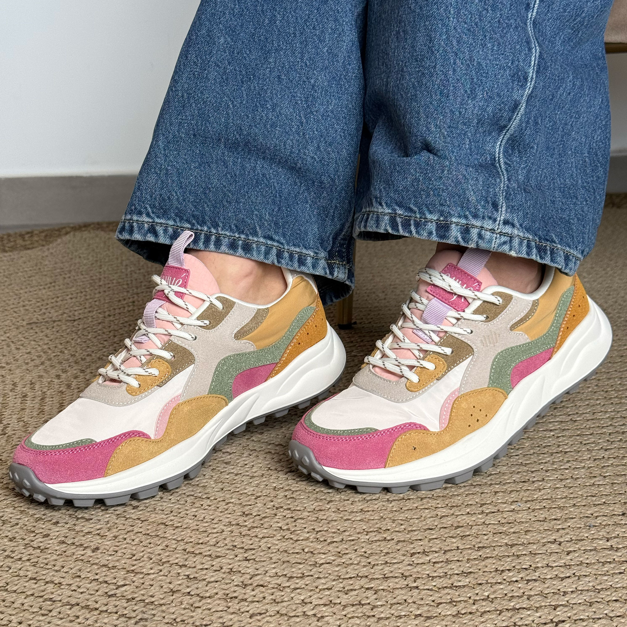 Sneaker multicolor in tessuto, microfibra ed ecopelle, suola 4 cm