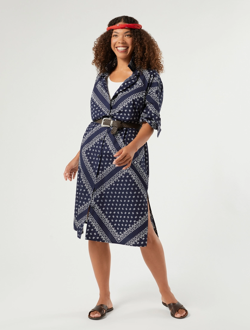 Scegli questo abito chemisier in popeline di cotone con stampa esclusiva se vuoi sfoggiare uno stile versatile e senza tempo. Un essential del guardaroba quotidiano.