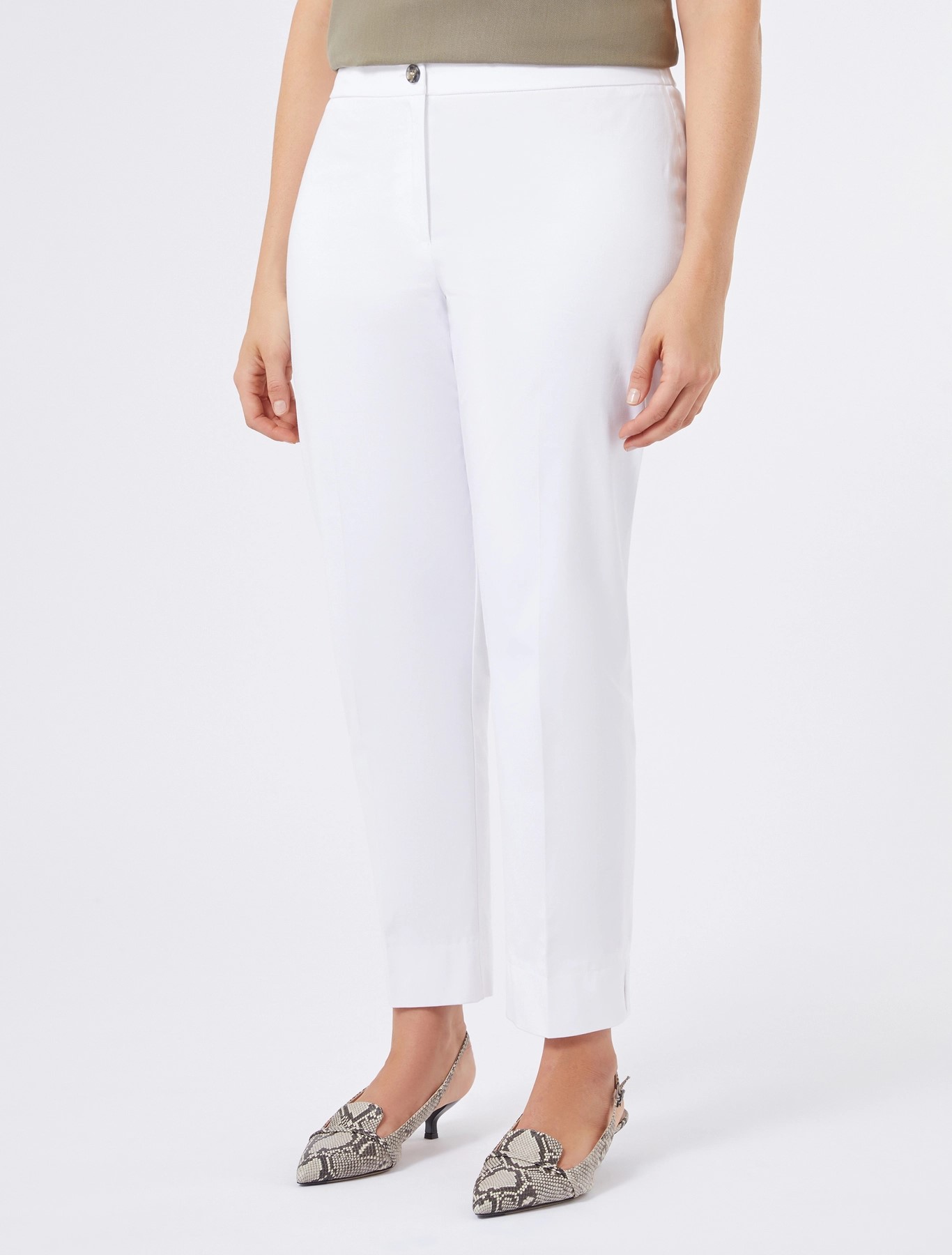 Sono realizzati in un confortevole e ricercato raso di cotone i pantaloni stretch, dalla linea slim. Base perfetta per un look senza tempo.