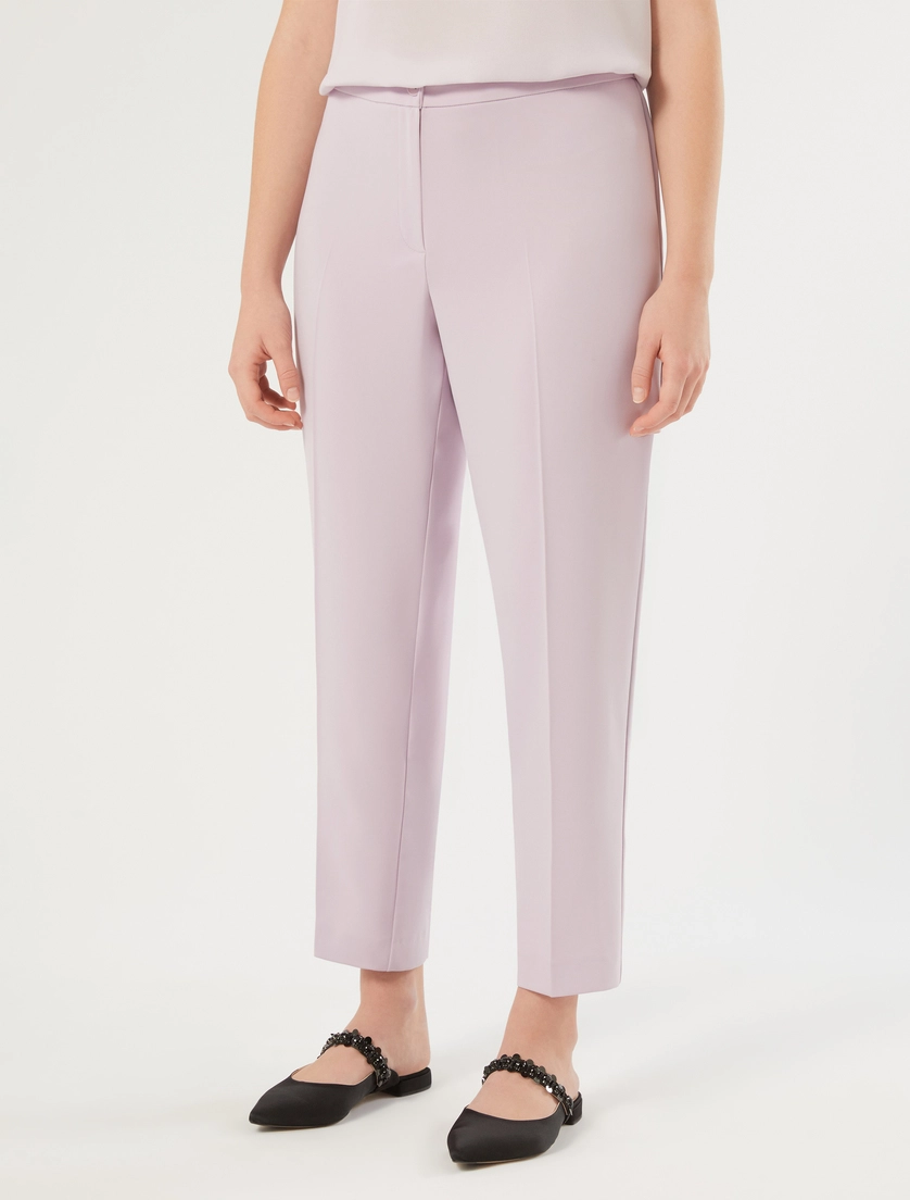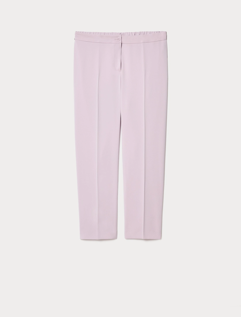 Linea affusolata per i pantaloni in tessuto fluido stretch, con piega stirata. Essenziale e versatile da abbinare in una miriade di outfit.