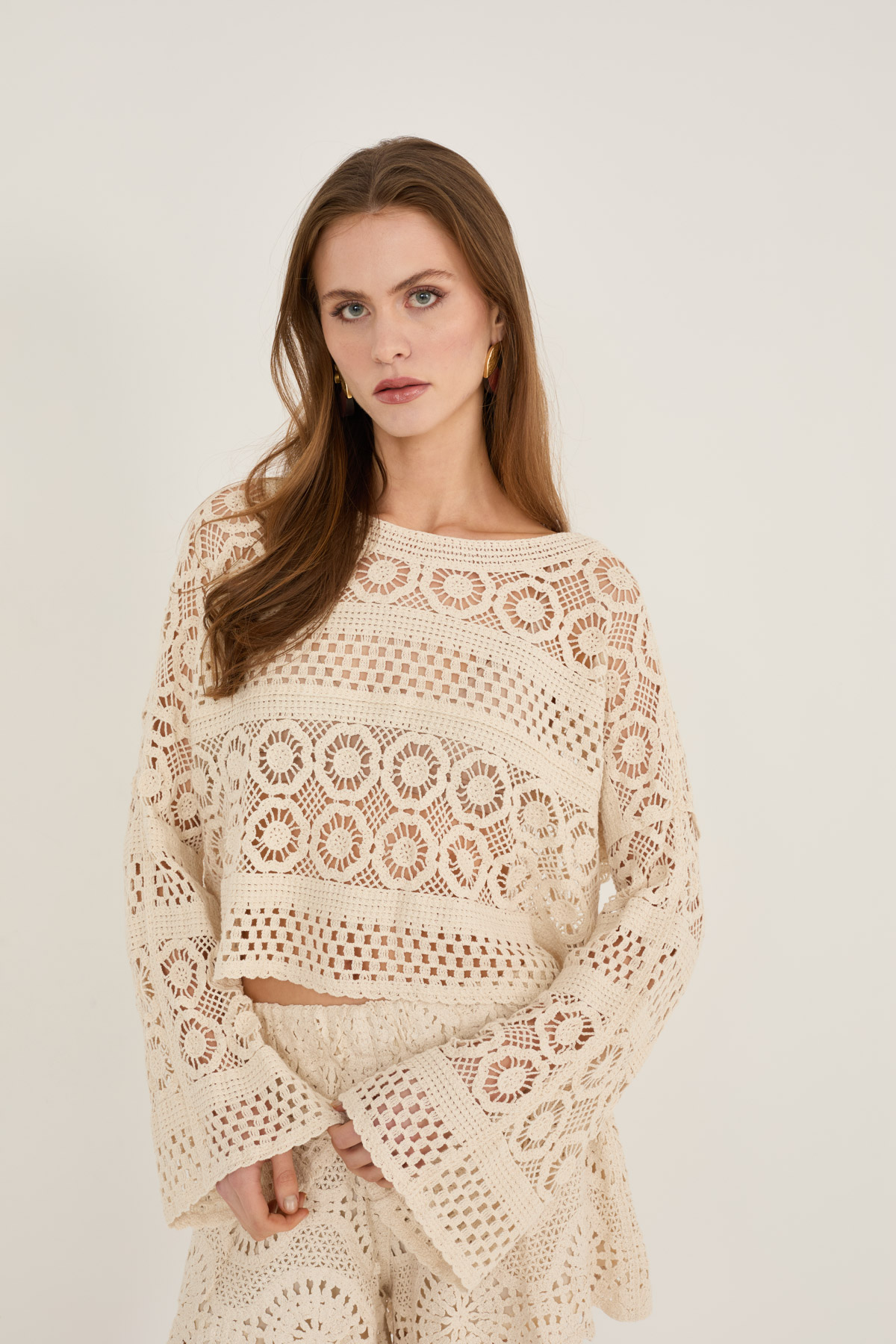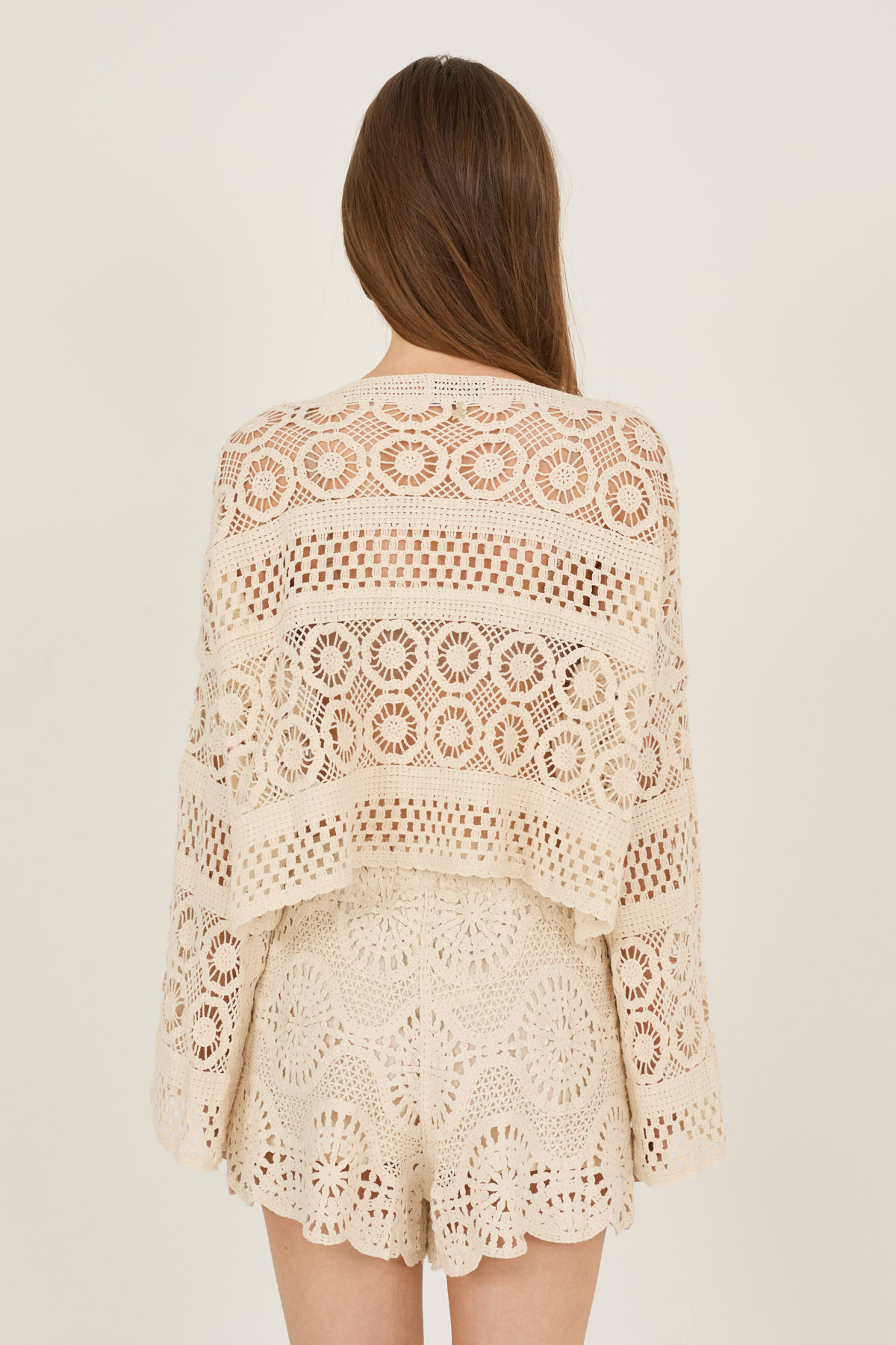Blusa in macrame' con maniche ampie, ideale da abbinare al suo shortino.