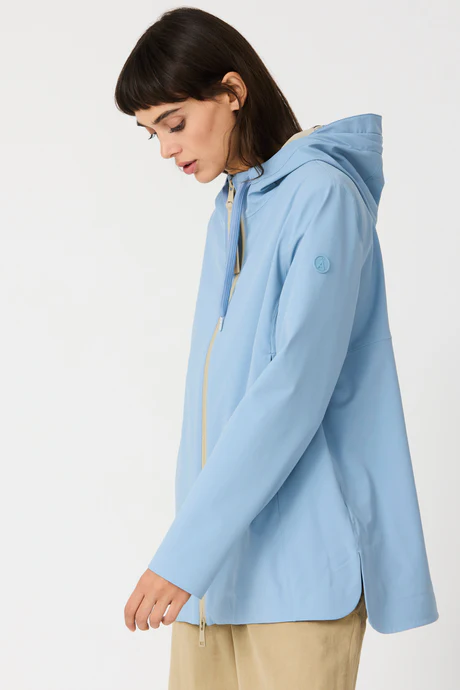 Capucha ajustable con cordón, con visera integrada y cuello alto.