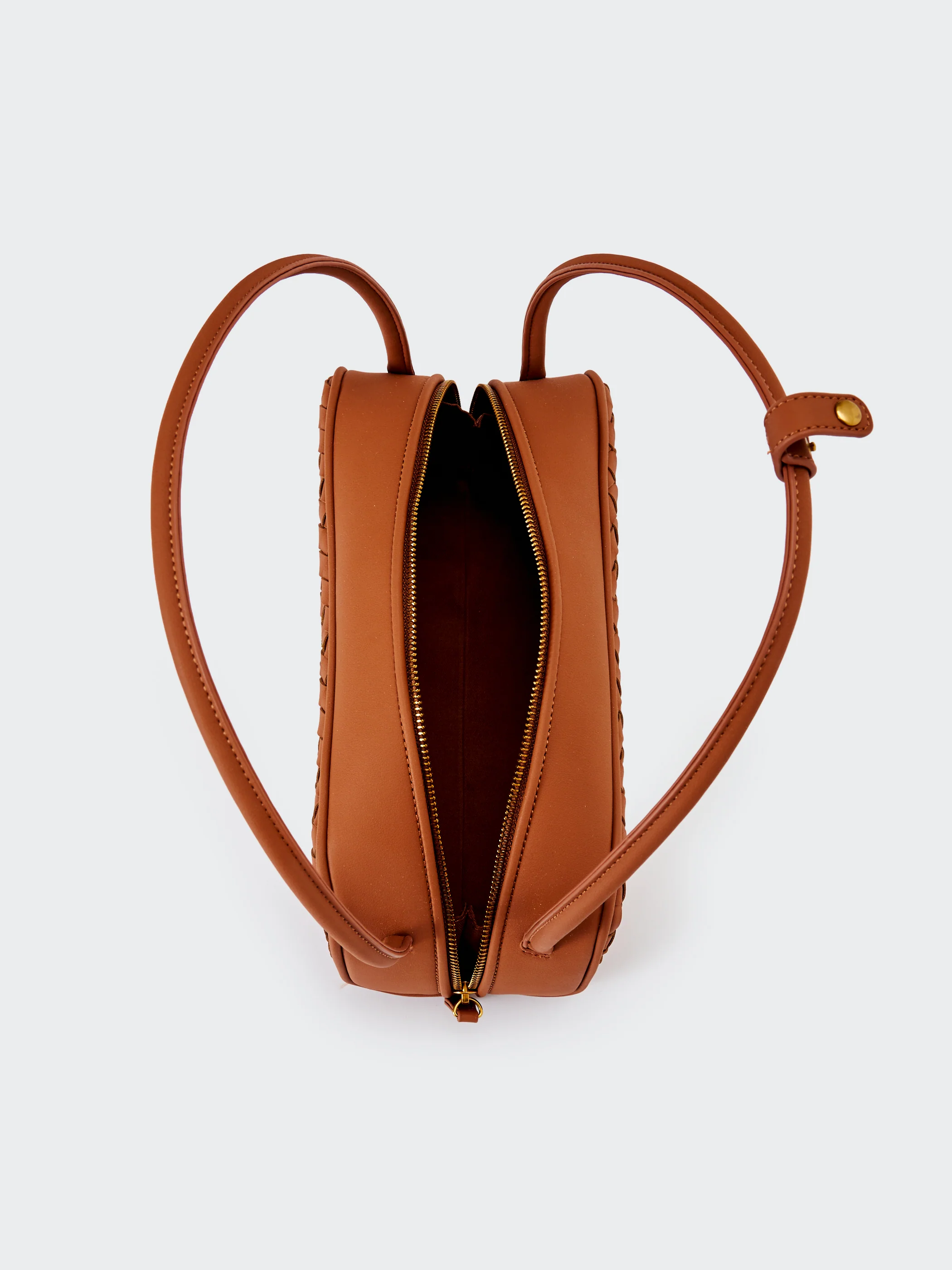Borsa Hicari a spalla in ecopelle intrecciata. Chiusura con zip di metallo con tiralampo in ecopelle. Manici rigidi in ecopelle liscia con fascetta con bottoncino a clip. Dettaglio fibbia V metal plate Vicolo. Dettaglio finiture anticate color oro. Tasca interna con cerniera e taschina piatta.