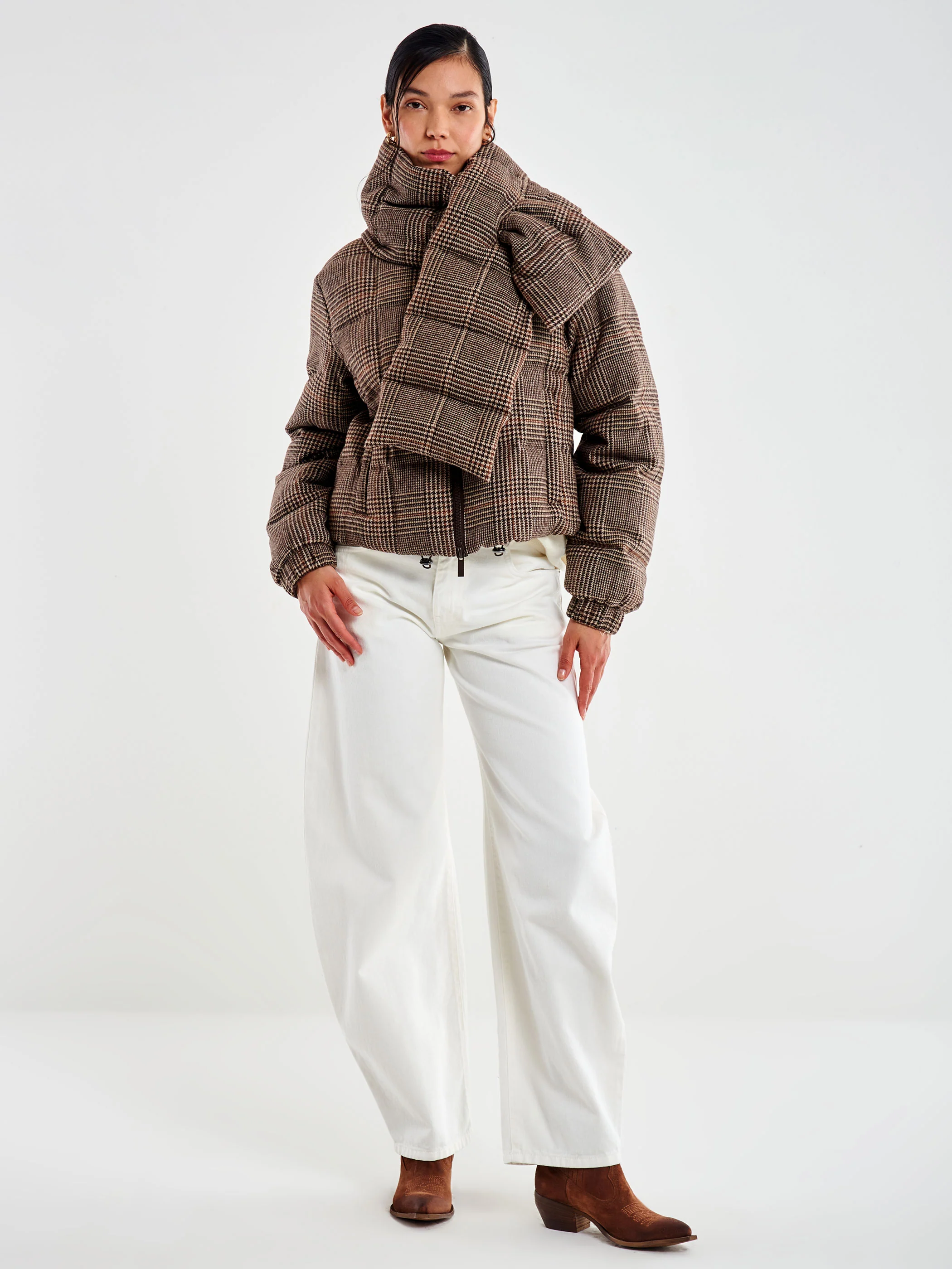 Piumino in Panno Check con Sciarpa