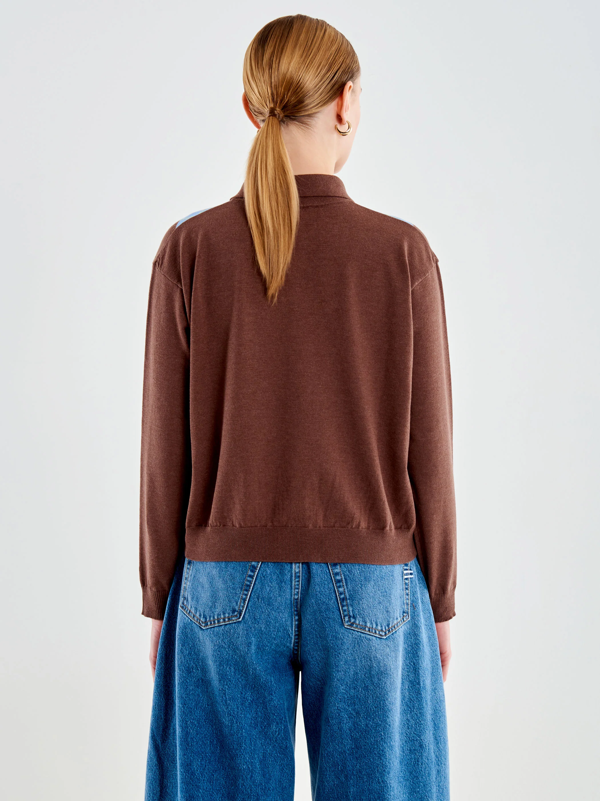 Polo in maglia, maniche lunghe. Con colletto e chiusura con due bottoncini. Finiture in maglia a coste. Dettaglio fantasia Rombi laterale.