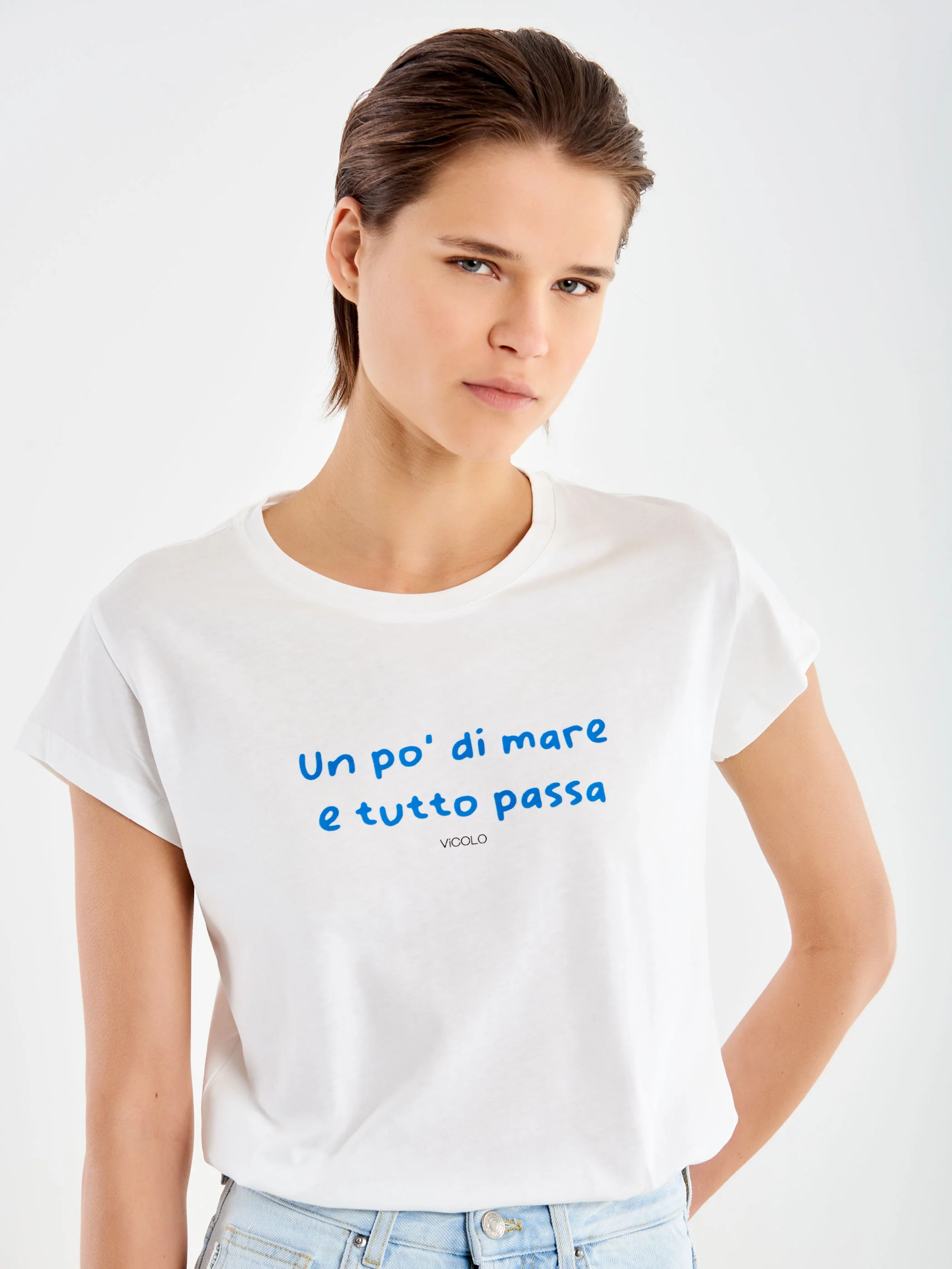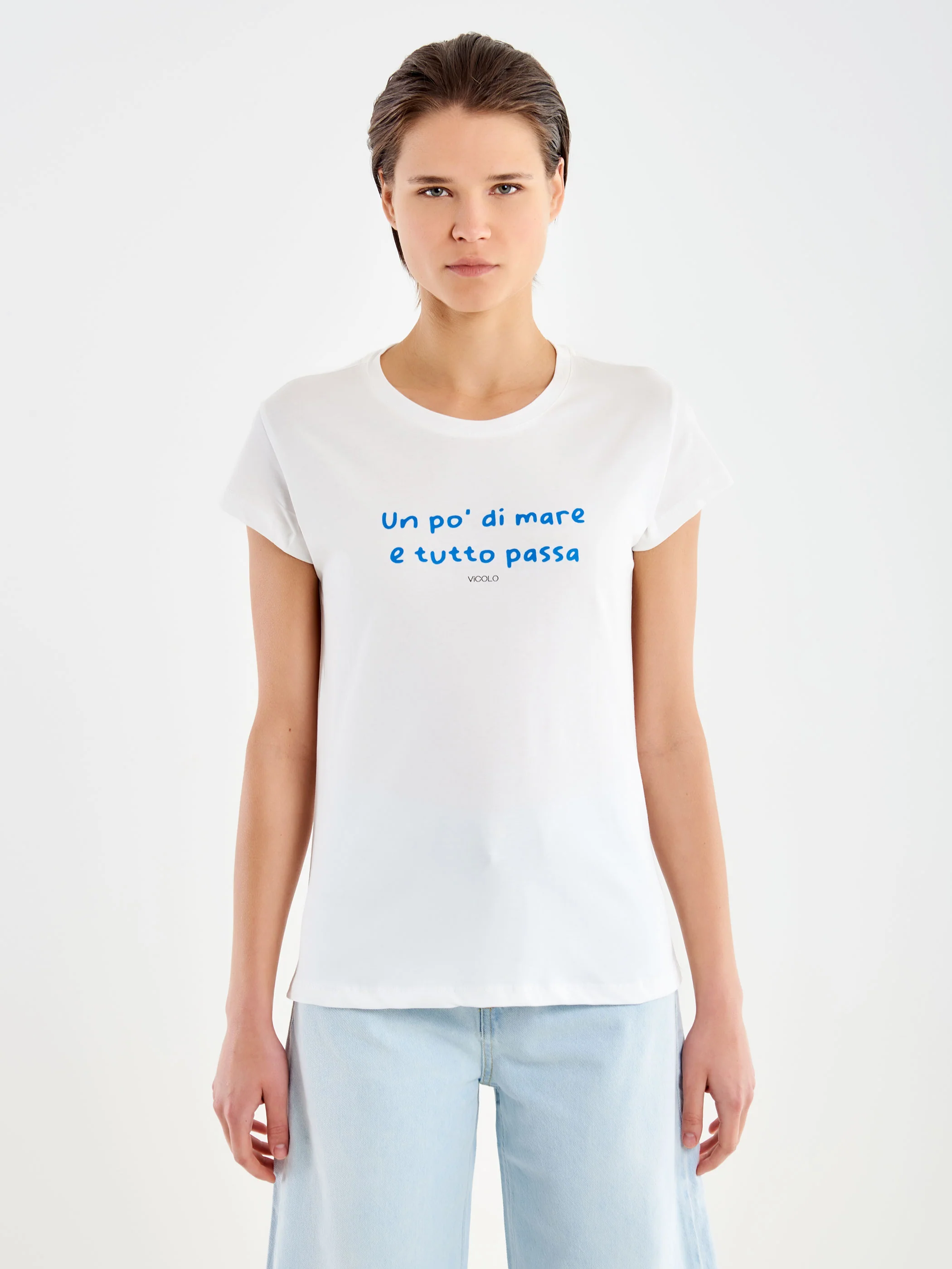 T-Shirt girocollo maniche corte stampa "un pò di mare e tutto passa".